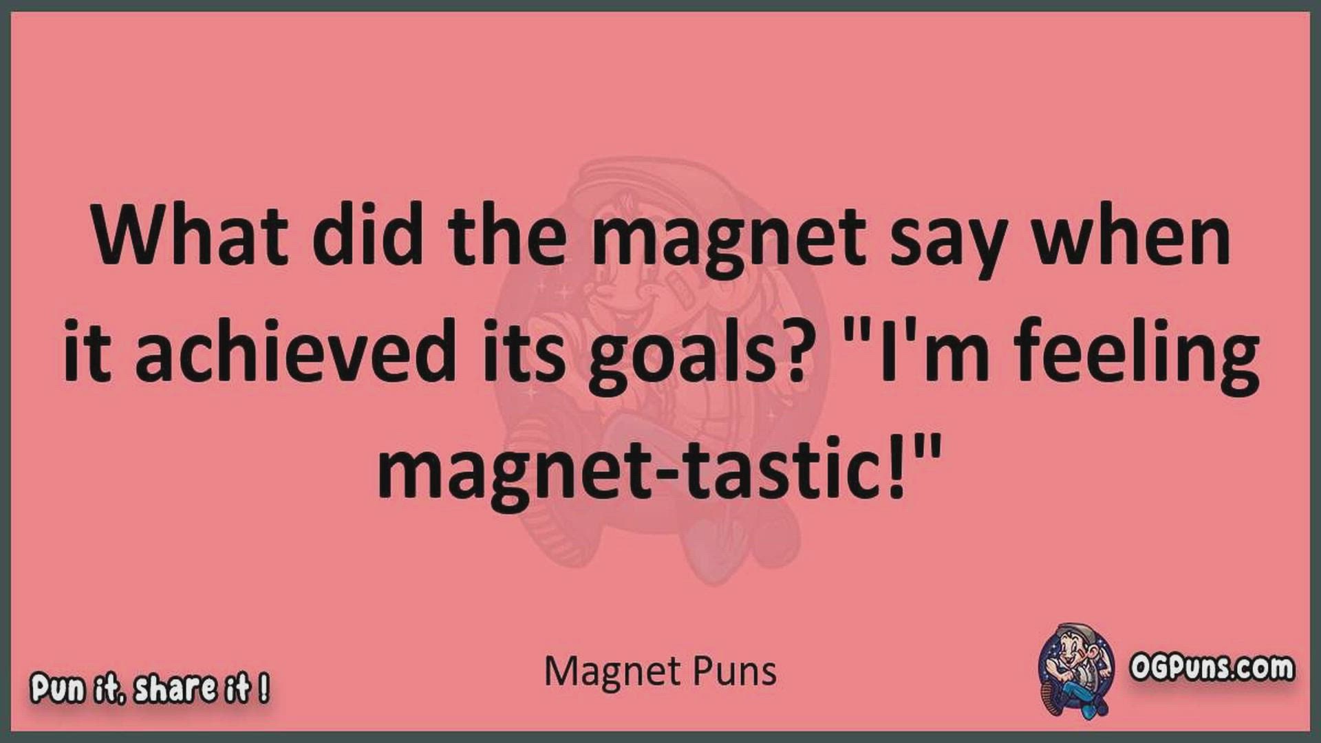 Delve into the delightful world of Magnet Puns ! Here, you'll find an entertaining mix of jokes, puns, quips, and wordplay. Each piece is crafted to offer a quick escape into humor, perfect for a light-hearted moment in any day. Whether you're seeking a chuckle or a clever twist on familiar themes, this collection promises to deliver smiles and laughter. Embrace the lighter side of life with humor that's both witty and refreshing."