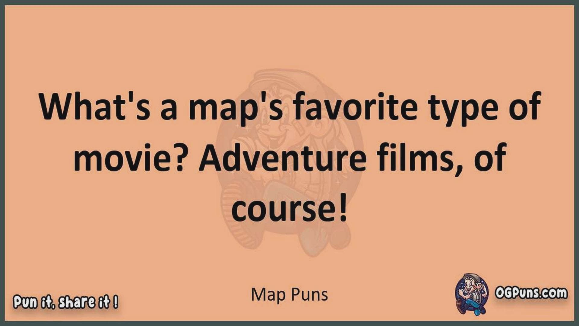 Delve into the delightful world of Map Puns ! Here, you'll find an entertaining mix of jokes, puns, quips, and wordplay. Each piece is crafted to offer a quick escape into humor, perfect for a light-hearted moment in any day. Whether you're seeking a chuckle or a clever twist on familiar themes, this collection promises to deliver smiles and laughter. Embrace the lighter side of life with humor that's both witty and refreshing."