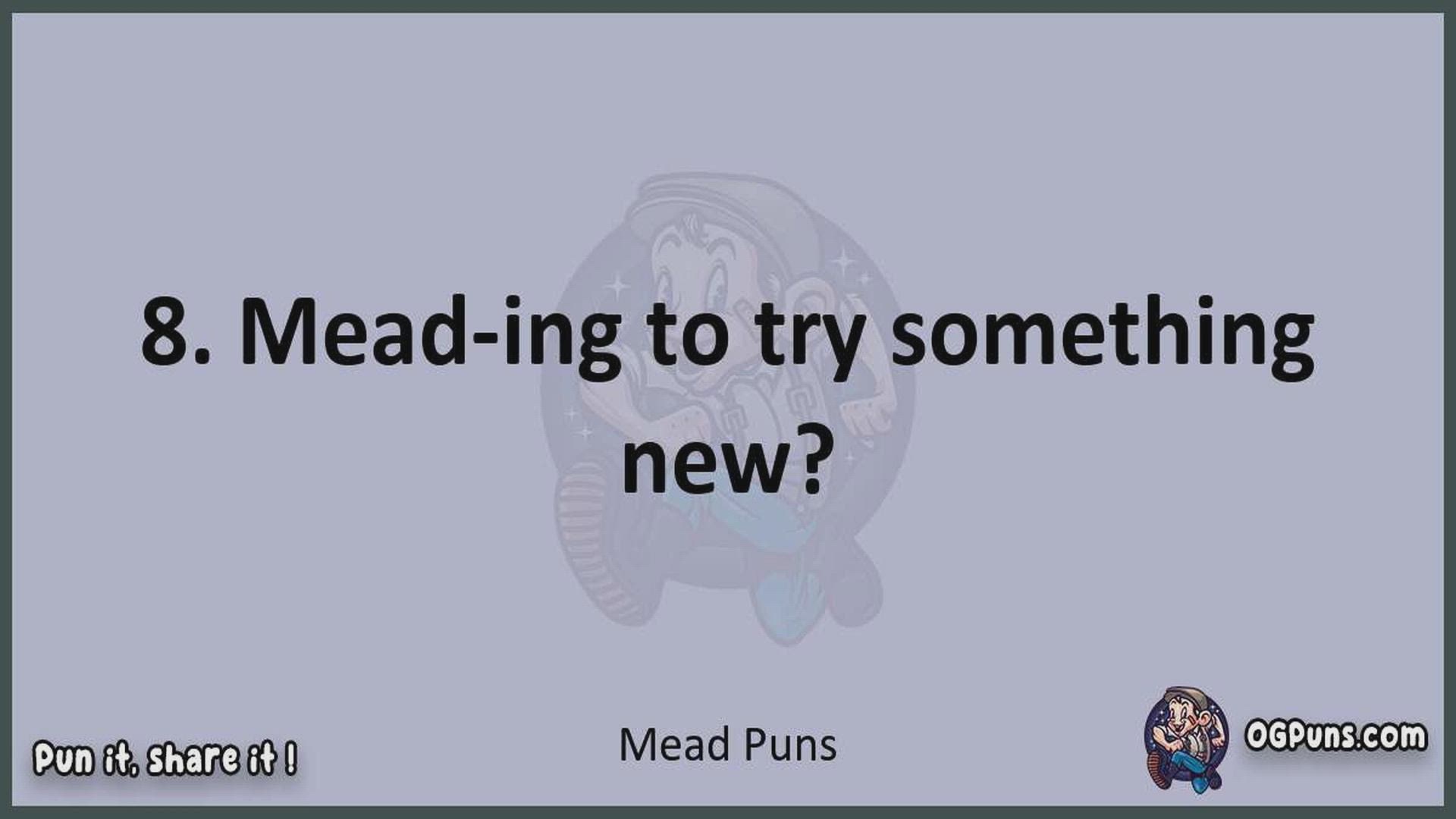 Delve into the delightful world of Mead Puns ! Here, you'll find an entertaining mix of jokes, puns, quips, and wordplay. Each piece is crafted to offer a quick escape into humor, perfect for a light-hearted moment in any day. Whether you're seeking a chuckle or a clever twist on familiar themes, this collection promises to deliver smiles and laughter. Embrace the lighter side of life with humor that's both witty and refreshing."