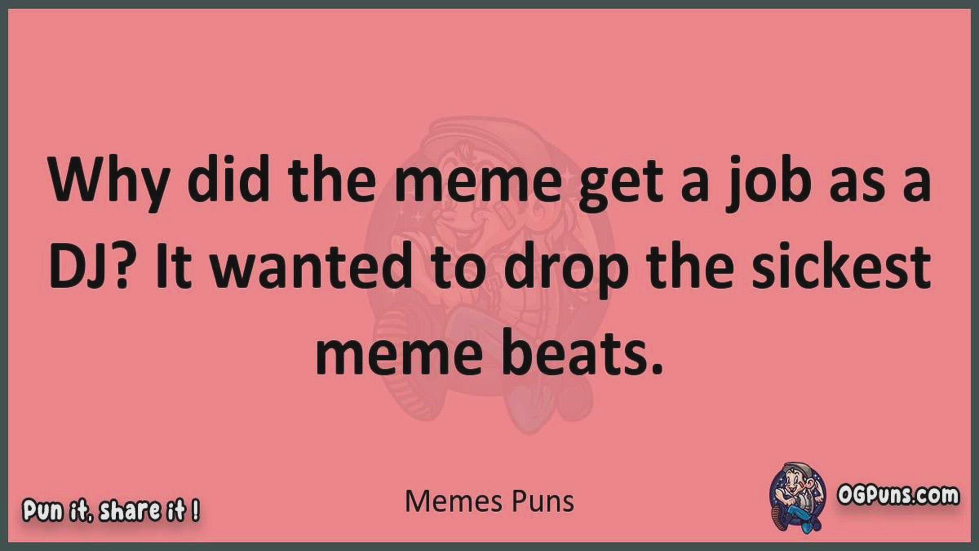 Delve into the delightful world of Memes Puns ! Here, you'll find an entertaining mix of jokes, puns, quips, and wordplay. Each piece is crafted to offer a quick escape into humor, perfect for a light-hearted moment in any day. Whether you're seeking a chuckle or a clever twist on familiar themes, this collection promises to deliver smiles and laughter. Embrace the lighter side of life with humor that's both witty and refreshing."