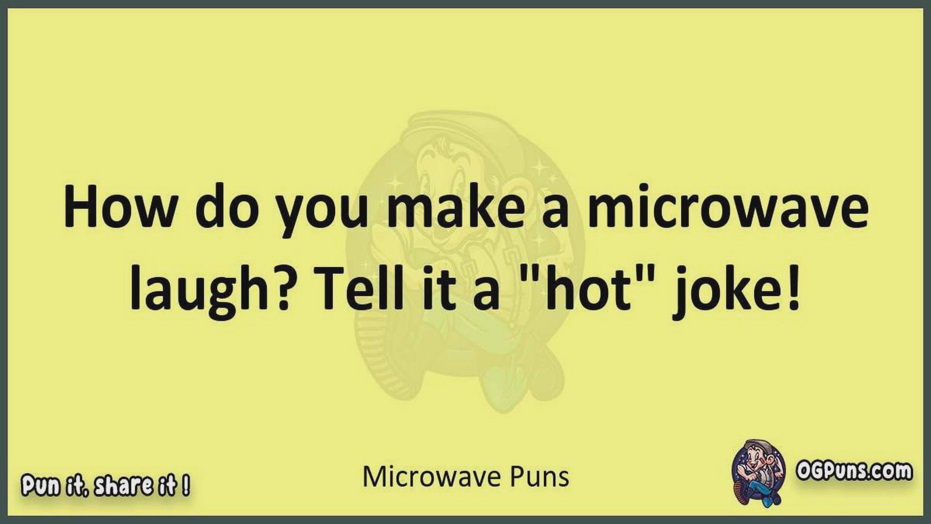 Delve into the delightful world of Microwave Puns ! Here, you'll find an entertaining mix of jokes, puns, quips, and wordplay. Each piece is crafted to offer a quick escape into humor, perfect for a light-hearted moment in any day. Whether you're seeking a chuckle or a clever twist on familiar themes, this collection promises to deliver smiles and laughter. Embrace the lighter side of life with humor that's both witty and refreshing."