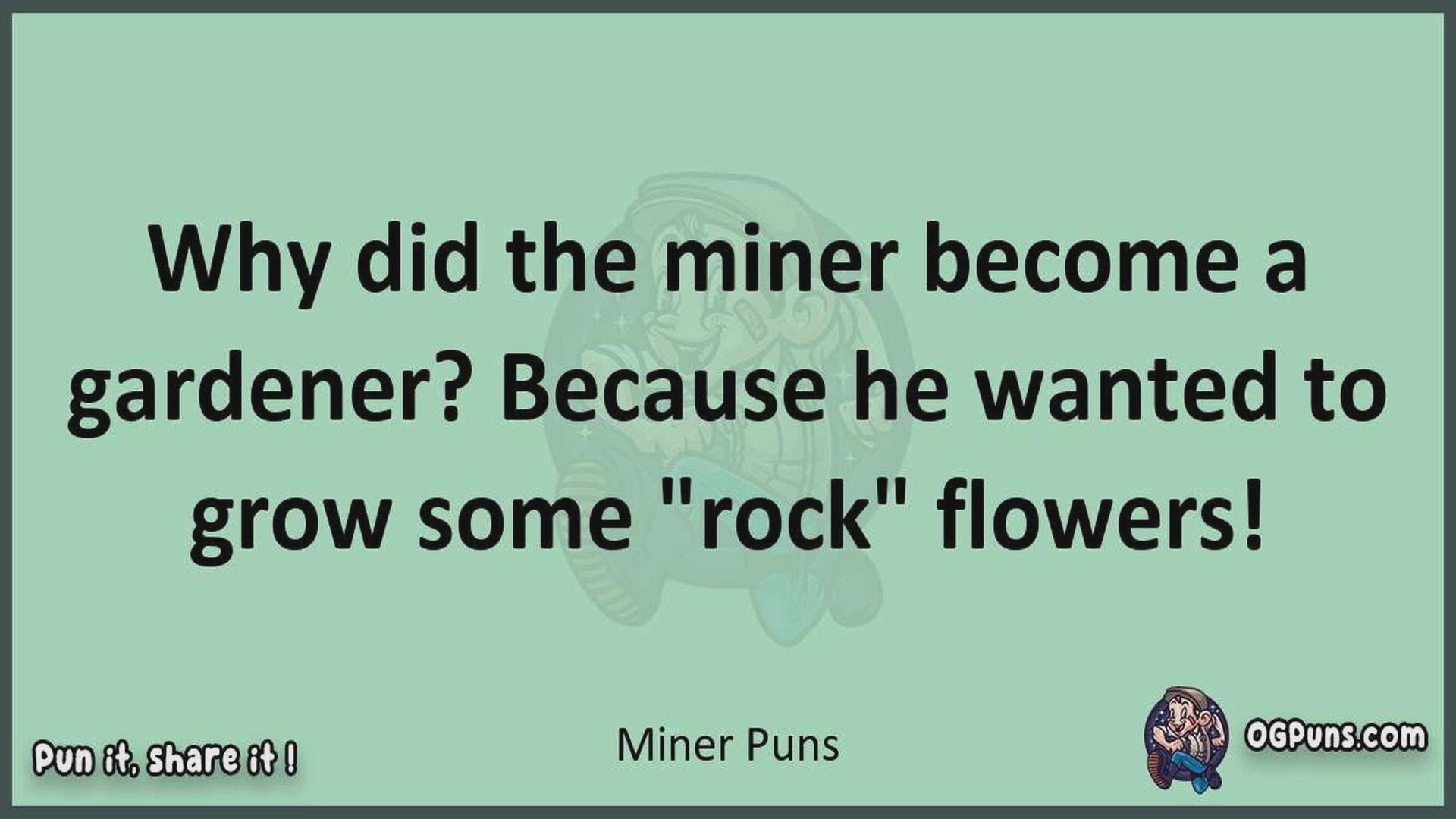 Delve into the delightful world of Miner Puns ! Here, you'll find an entertaining mix of jokes, puns, quips, and wordplay. Each piece is crafted to offer a quick escape into humor, perfect for a light-hearted moment in any day. Whether you're seeking a chuckle or a clever twist on familiar themes, this collection promises to deliver smiles and laughter. Embrace the lighter side of life with humor that's both witty and refreshing."