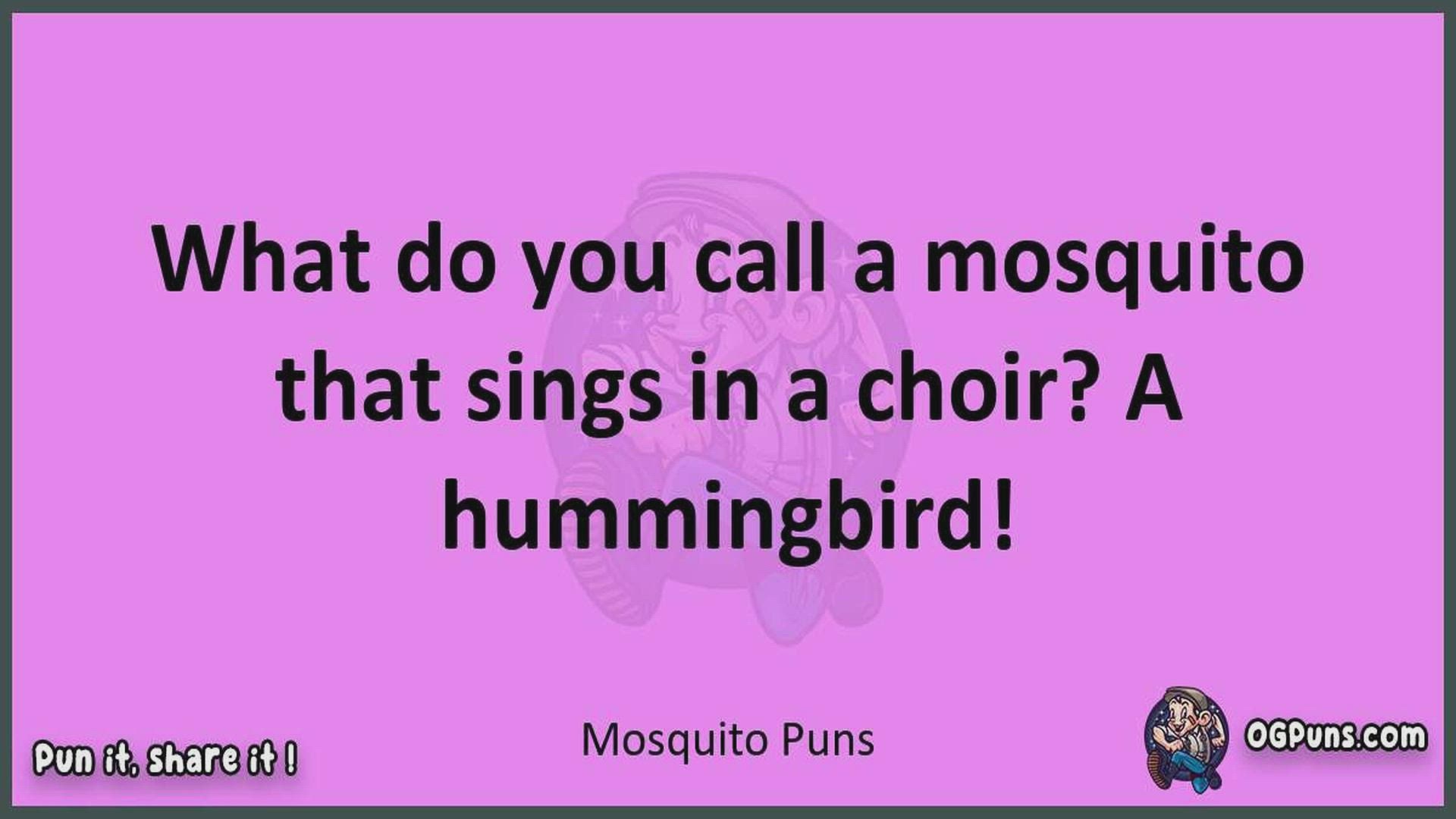 Delve into the delightful world of Mosquito Puns ! Here, you'll find an entertaining mix of jokes, puns, quips, and wordplay. Each piece is crafted to offer a quick escape into humor, perfect for a light-hearted moment in any day. Whether you're seeking a chuckle or a clever twist on familiar themes, this collection promises to deliver smiles and laughter. Embrace the lighter side of life with humor that's both witty and refreshing."