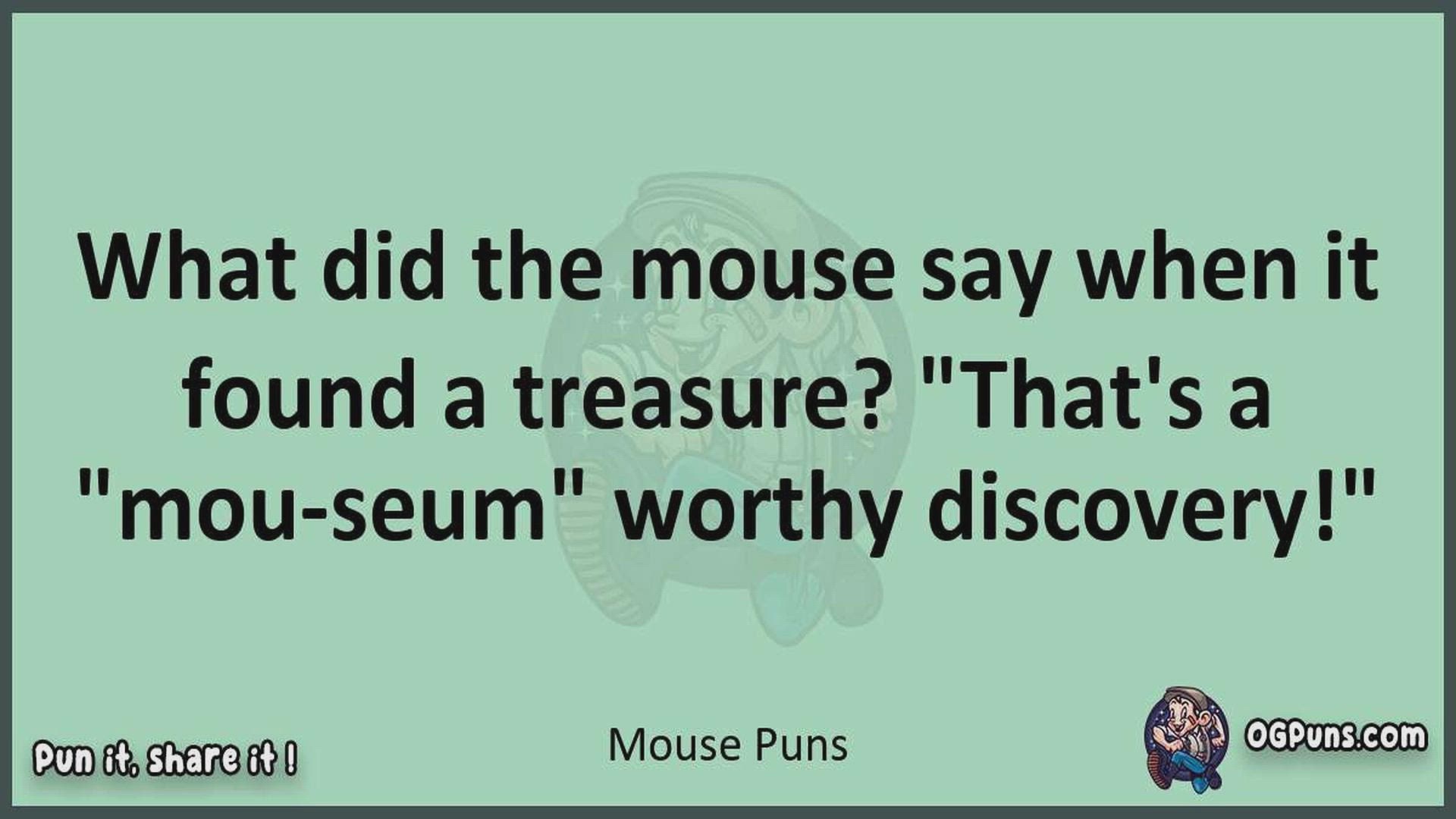 Delve into the delightful world of Mouse Puns ! Here, you'll find an entertaining mix of jokes, puns, quips, and wordplay. Each piece is crafted to offer a quick escape into humor, perfect for a light-hearted moment in any day. Whether you're seeking a chuckle or a clever twist on familiar themes, this collection promises to deliver smiles and laughter. Embrace the lighter side of life with humor that's both witty and refreshing."