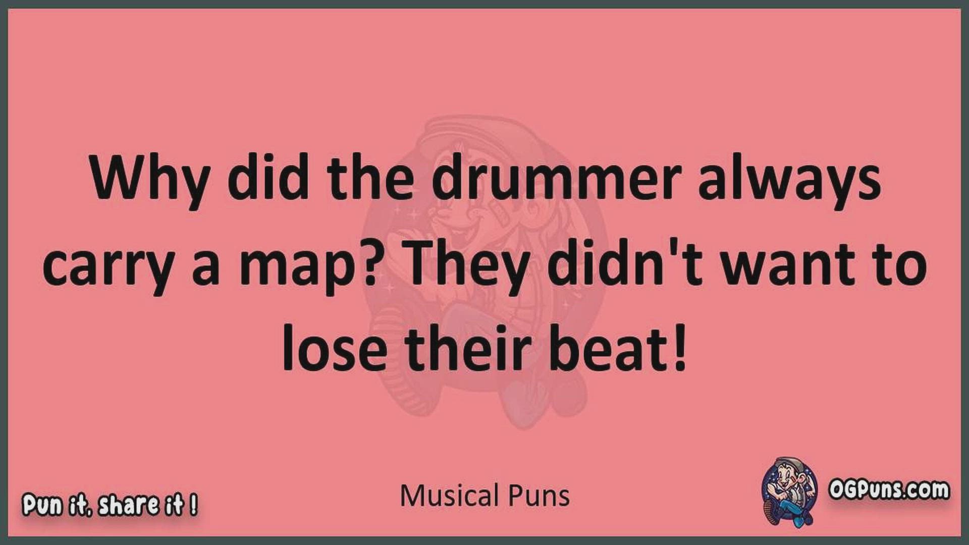 Delve into the delightful world of Musical Puns ! Here, you'll find an entertaining mix of jokes, puns, quips, and wordplay. Each piece is crafted to offer a quick escape into humor, perfect for a light-hearted moment in any day. Whether you're seeking a chuckle or a clever twist on familiar themes, this collection promises to deliver smiles and laughter. Embrace the lighter side of life with humor that's both witty and refreshing."