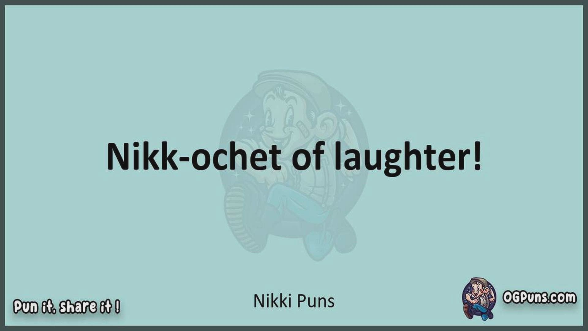 Delve into the delightful world of Nikki Puns ! Here, you'll find an entertaining mix of jokes, puns, quips, and wordplay. Each piece is crafted to offer a quick escape into humor, perfect for a light-hearted moment in any day. Whether you're seeking a chuckle or a clever twist on familiar themes, this collection promises to deliver smiles and laughter. Embrace the lighter side of life with humor that's both witty and refreshing."