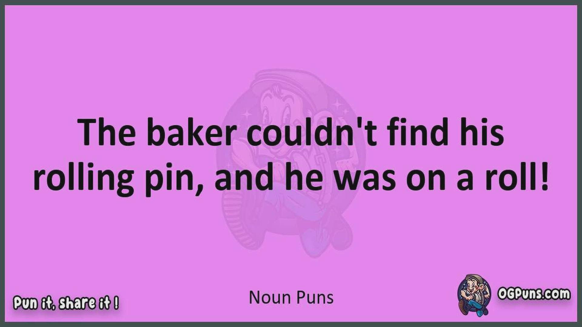 Delve into the delightful world of Noun Puns ! Here, you'll find an entertaining mix of jokes, puns, quips, and wordplay. Each piece is crafted to offer a quick escape into humor, perfect for a light-hearted moment in any day. Whether you're seeking a chuckle or a clever twist on familiar themes, this collection promises to deliver smiles and laughter. Embrace the lighter side of life with humor that's both witty and refreshing."