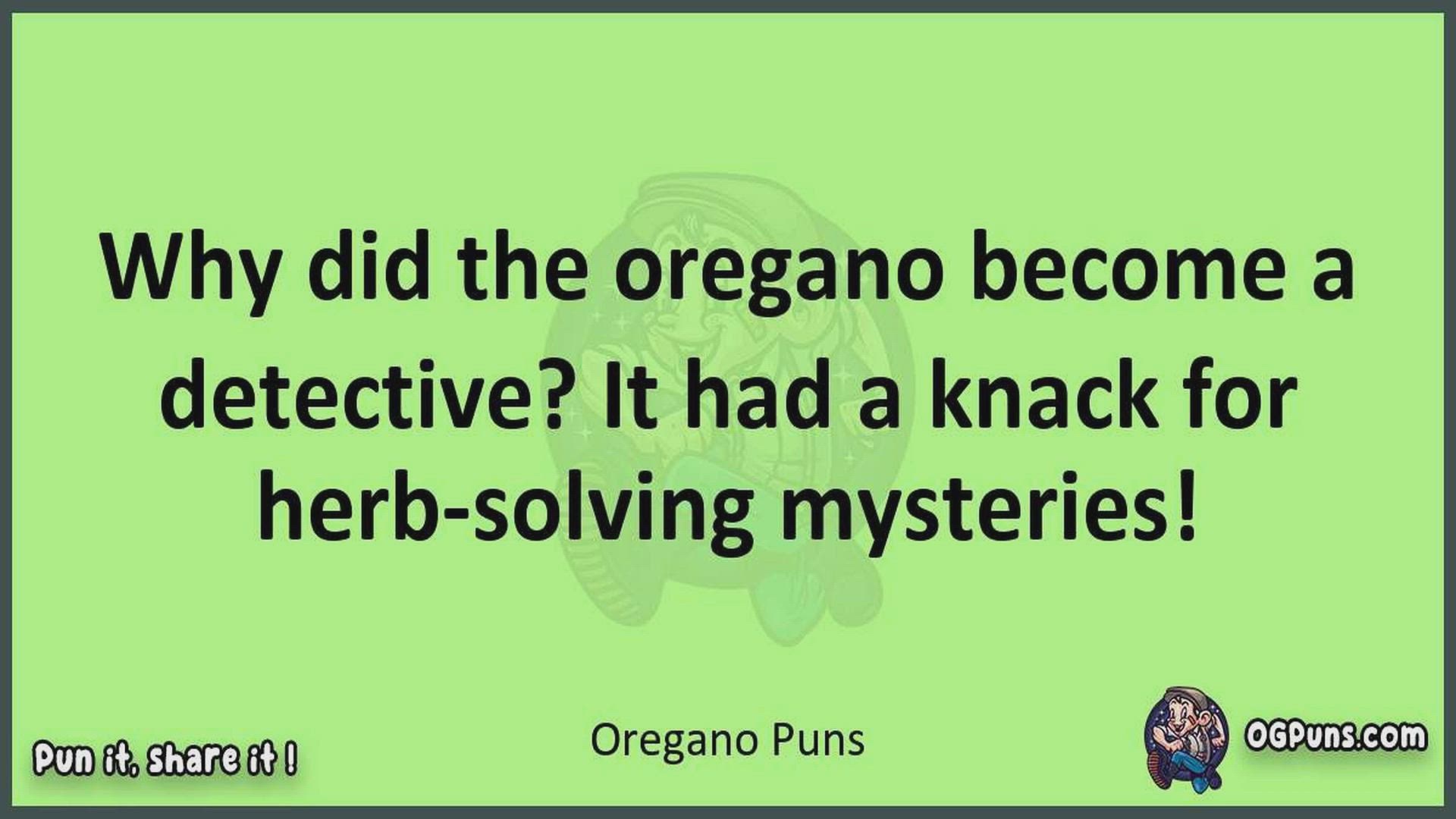Delve into the delightful world of Oregano Puns ! Here, you'll find an entertaining mix of jokes, puns, quips, and wordplay. Each piece is crafted to offer a quick escape into humor, perfect for a light-hearted moment in any day. Whether you're seeking a chuckle or a clever twist on familiar themes, this collection promises to deliver smiles and laughter. Embrace the lighter side of life with humor that's both witty and refreshing."