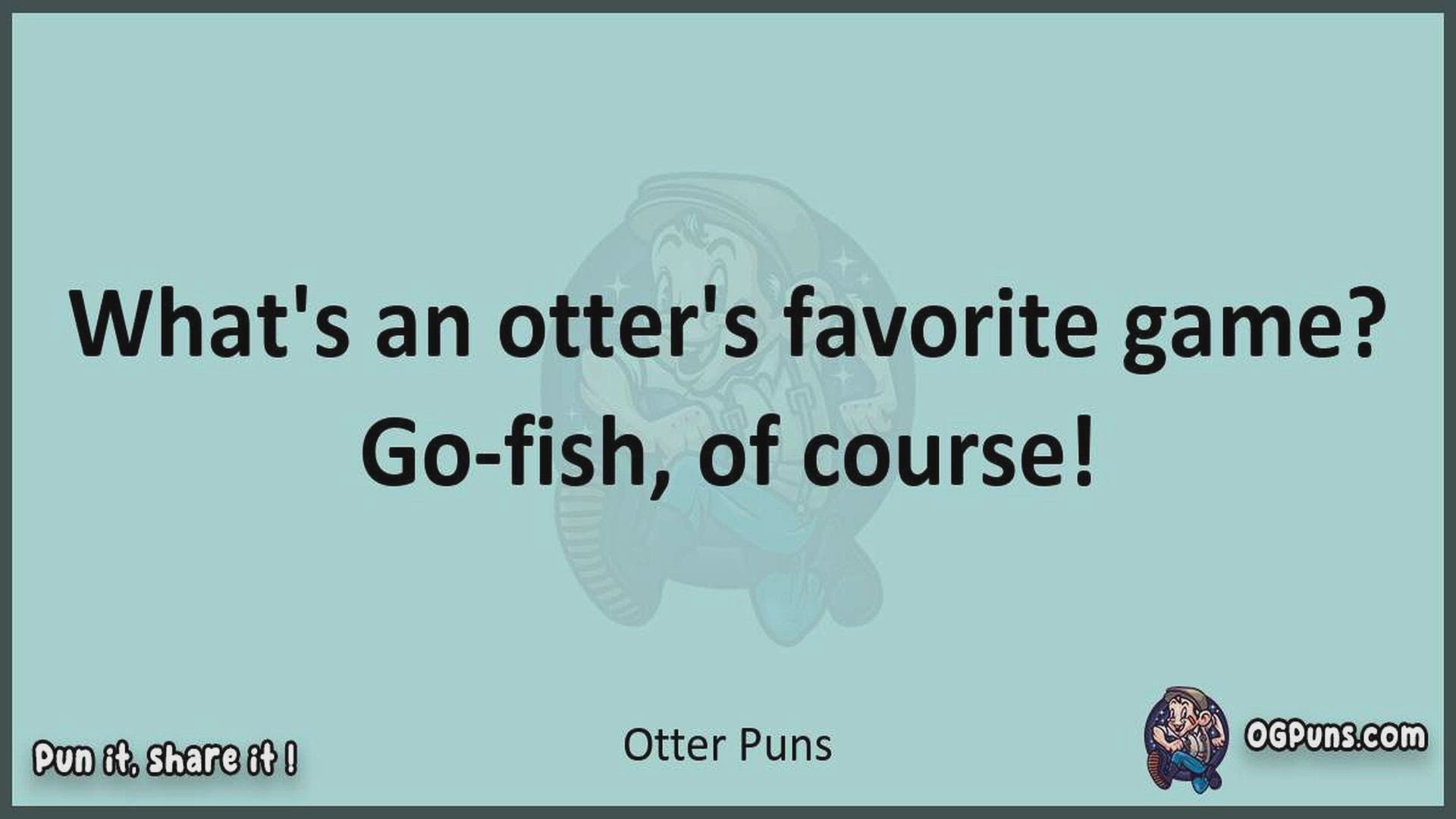 Delve into the delightful world of Otter Puns ! Here, you'll find an entertaining mix of jokes, puns, quips, and wordplay. Each piece is crafted to offer a quick escape into humor, perfect for a light-hearted moment in any day. Whether you're seeking a chuckle or a clever twist on familiar themes, this collection promises to deliver smiles and laughter. Embrace the lighter side of life with humor that's both witty and refreshing."