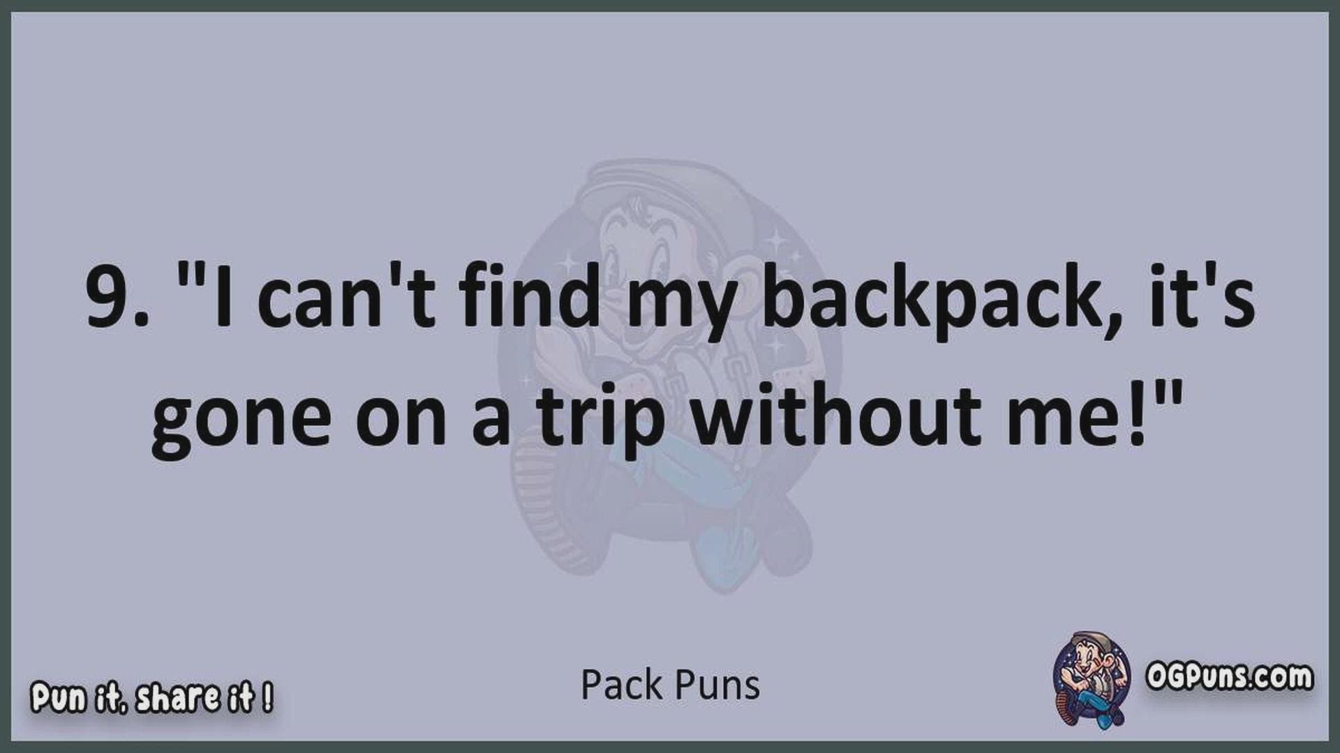 Delve into the delightful world of Pack Puns ! Here, you'll find an entertaining mix of jokes, puns, quips, and wordplay. Each piece is crafted to offer a quick escape into humor, perfect for a light-hearted moment in any day. Whether you're seeking a chuckle or a clever twist on familiar themes, this collection promises to deliver smiles and laughter. Embrace the lighter side of life with humor that's both witty and refreshing."