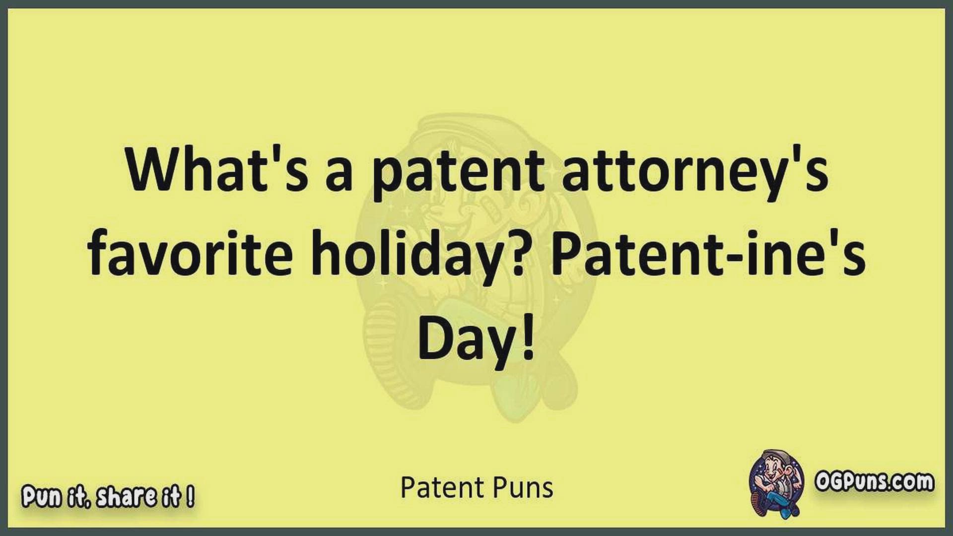 Delve into the delightful world of Patent Puns ! Here, you'll find an entertaining mix of jokes, puns, quips, and wordplay. Each piece is crafted to offer a quick escape into humor, perfect for a light-hearted moment in any day. Whether you're seeking a chuckle or a clever twist on familiar themes, this collection promises to deliver smiles and laughter. Embrace the lighter side of life with humor that's both witty and refreshing."