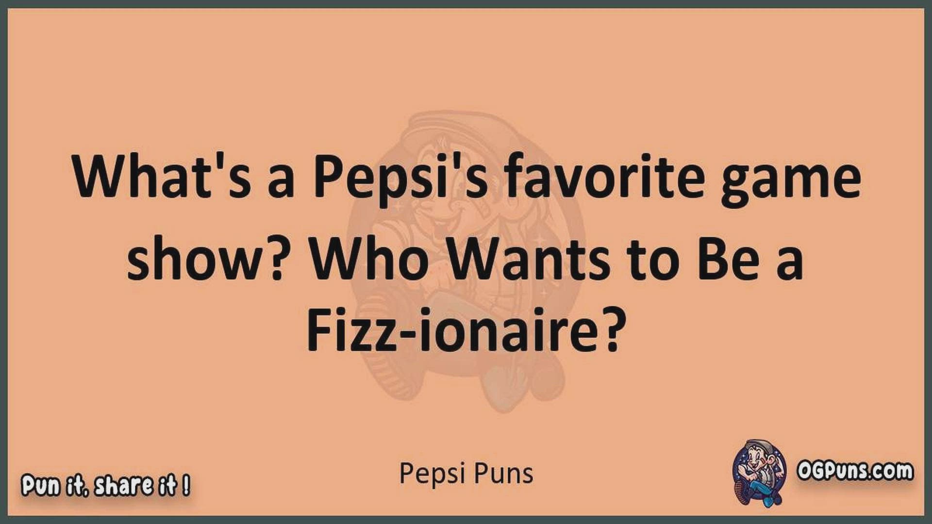 Delve into the delightful world of Pepsi Puns ! Here, you'll find an entertaining mix of jokes, puns, quips, and wordplay. Each piece is crafted to offer a quick escape into humor, perfect for a light-hearted moment in any day. Whether you're seeking a chuckle or a clever twist on familiar themes, this collection promises to deliver smiles and laughter. Embrace the lighter side of life with humor that's both witty and refreshing."