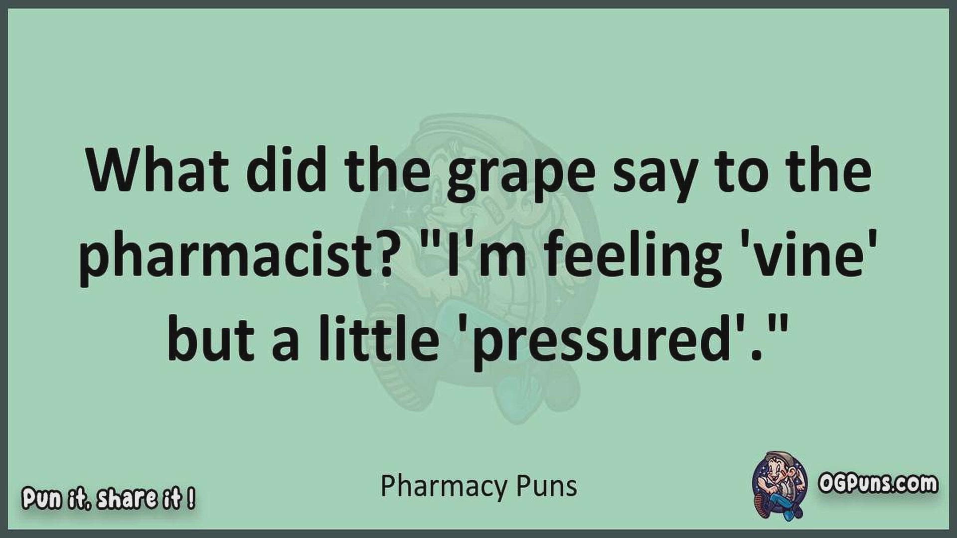 Delve into the delightful world of Pharmacy Puns ! Here, you'll find an entertaining mix of jokes, puns, quips, and wordplay. Each piece is crafted to offer a quick escape into humor, perfect for a light-hearted moment in any day. Whether you're seeking a chuckle or a clever twist on familiar themes, this collection promises to deliver smiles and laughter. Embrace the lighter side of life with humor that's both witty and refreshing."