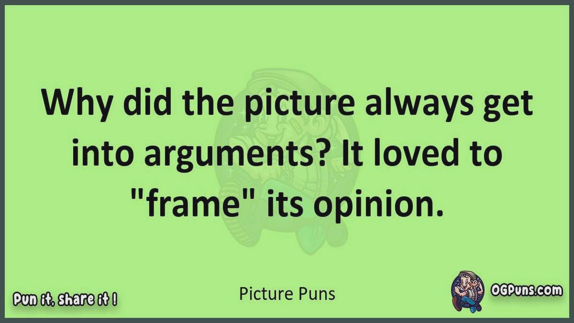 Delve into the delightful world of Picture Puns ! Here, you'll find an entertaining mix of jokes, puns, quips, and wordplay. Each piece is crafted to offer a quick escape into humor, perfect for a light-hearted moment in any day. Whether you're seeking a chuckle or a clever twist on familiar themes, this collection promises to deliver smiles and laughter. Embrace the lighter side of life with humor that's both witty and refreshing."