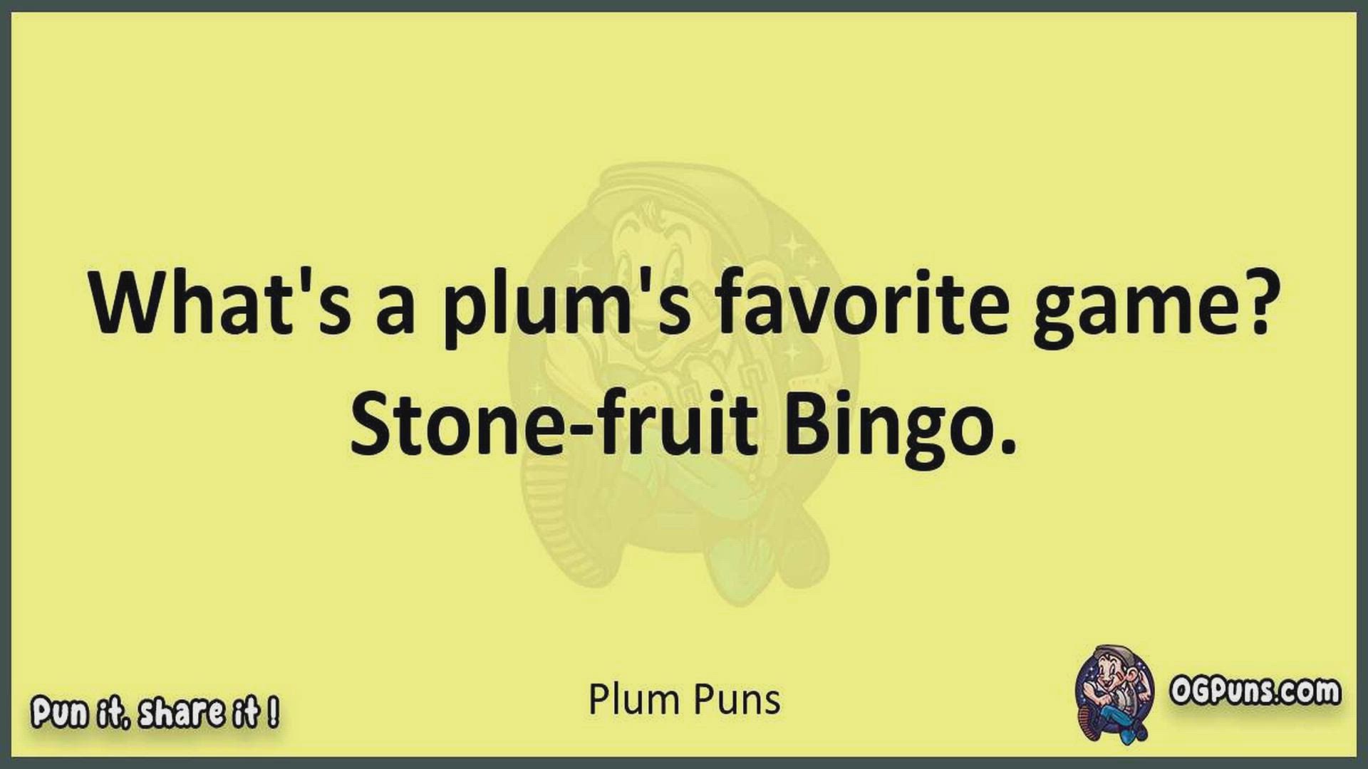 Delve into the delightful world of Plum Puns ! Here, you'll find an entertaining mix of jokes, puns, quips, and wordplay. Each piece is crafted to offer a quick escape into humor, perfect for a light-hearted moment in any day. Whether you're seeking a chuckle or a clever twist on familiar themes, this collection promises to deliver smiles and laughter. Embrace the lighter side of life with humor that's both witty and refreshing."
