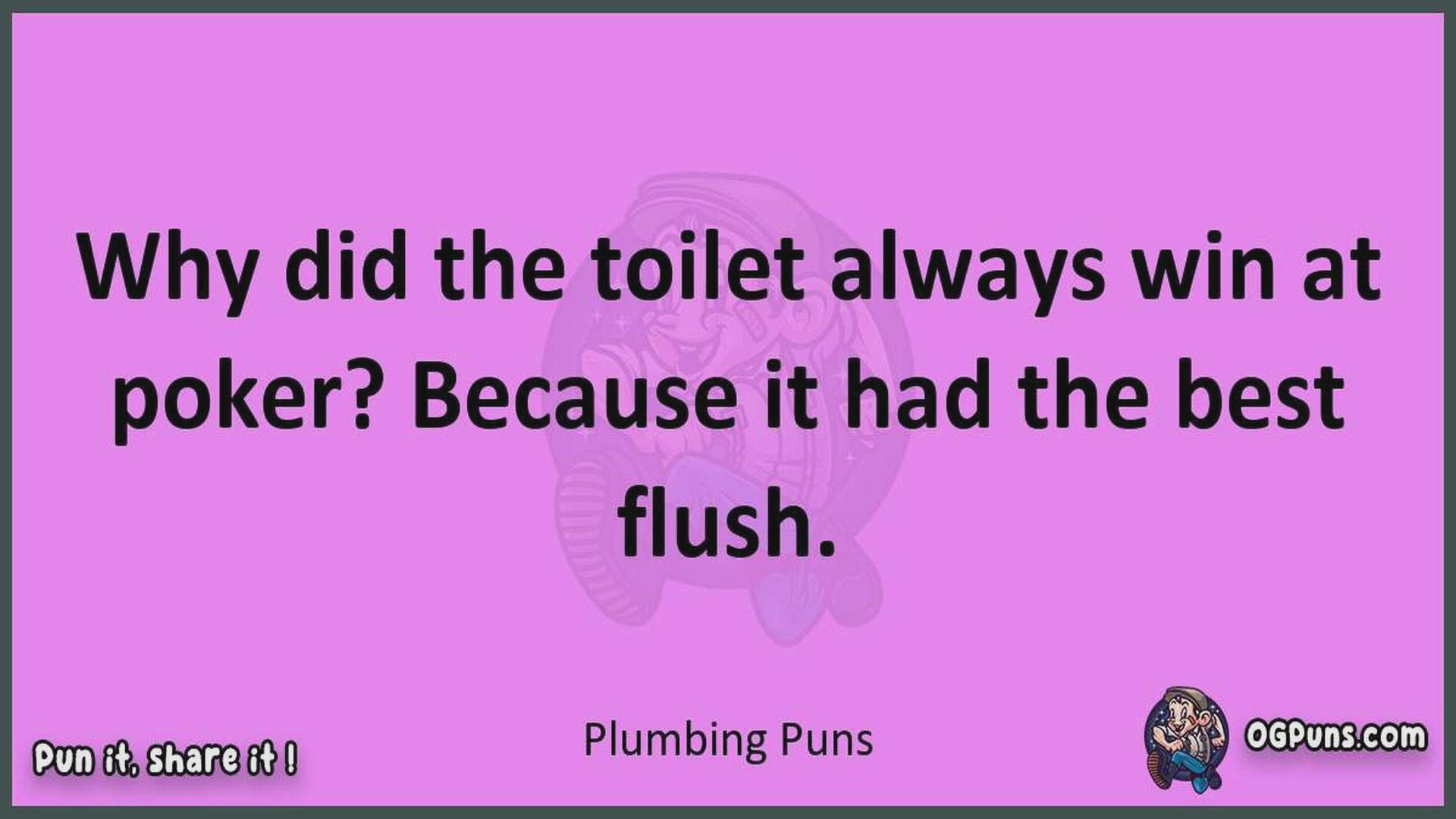 Delve into the delightful world of Plumbing Puns ! Here, you'll find an entertaining mix of jokes, puns, quips, and wordplay. Each piece is crafted to offer a quick escape into humor, perfect for a light-hearted moment in any day. Whether you're seeking a chuckle or a clever twist on familiar themes, this collection promises to deliver smiles and laughter. Embrace the lighter side of life with humor that's both witty and refreshing."