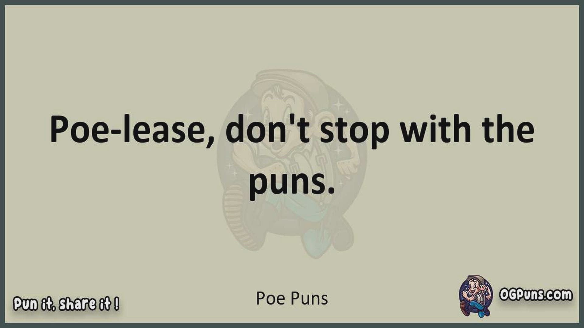Delve into the delightful world of Poe Puns ! Here, you'll find an entertaining mix of jokes, puns, quips, and wordplay. Each piece is crafted to offer a quick escape into humor, perfect for a light-hearted moment in any day. Whether you're seeking a chuckle or a clever twist on familiar themes, this collection promises to deliver smiles and laughter. Embrace the lighter side of life with humor that's both witty and refreshing."