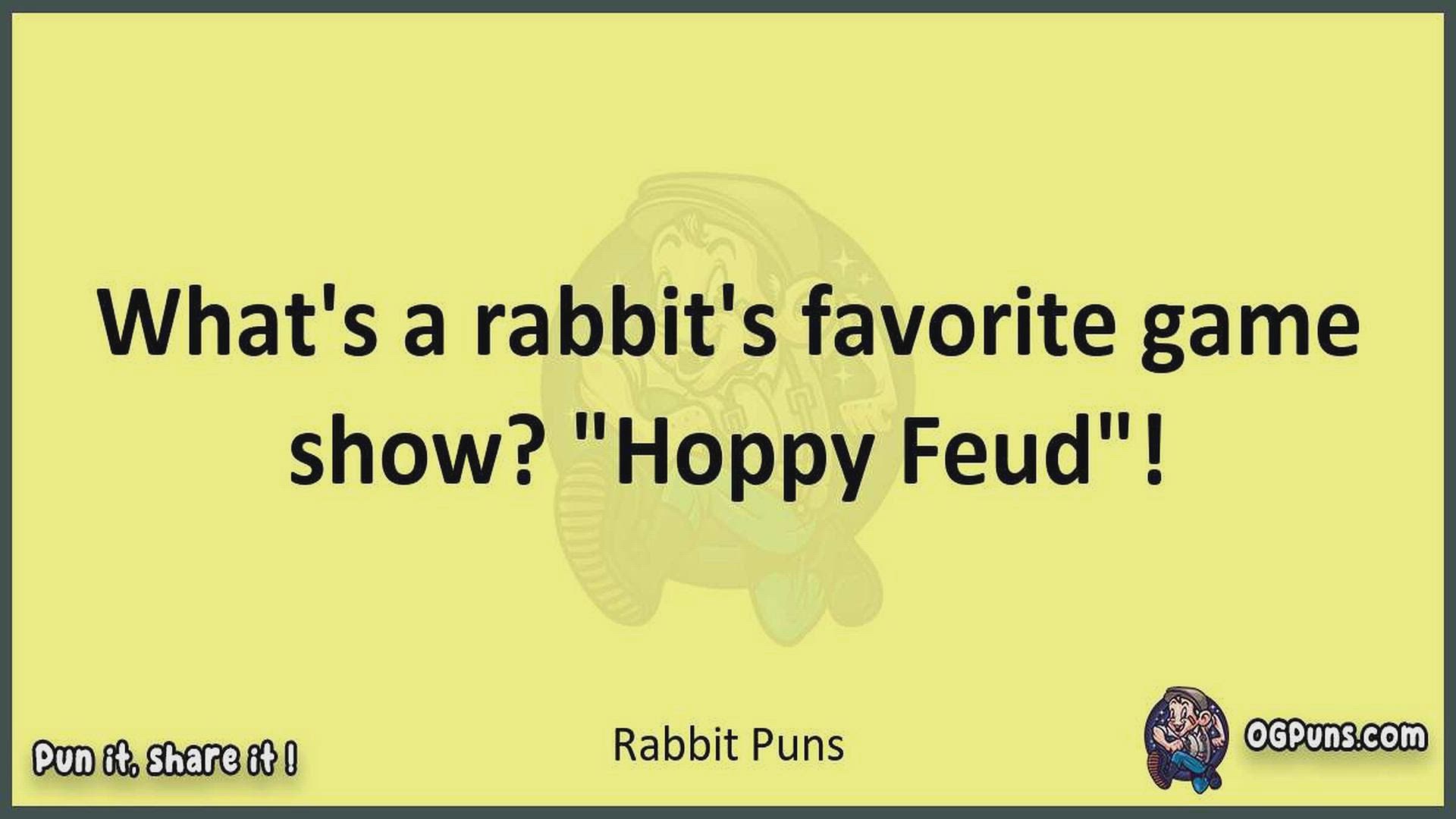 Delve into the delightful world of Rabbit Puns ! Here, you'll find an entertaining mix of jokes, puns, quips, and wordplay. Each piece is crafted to offer a quick escape into humor, perfect for a light-hearted moment in any day. Whether you're seeking a chuckle or a clever twist on familiar themes, this collection promises to deliver smiles and laughter. Embrace the lighter side of life with humor that's both witty and refreshing."