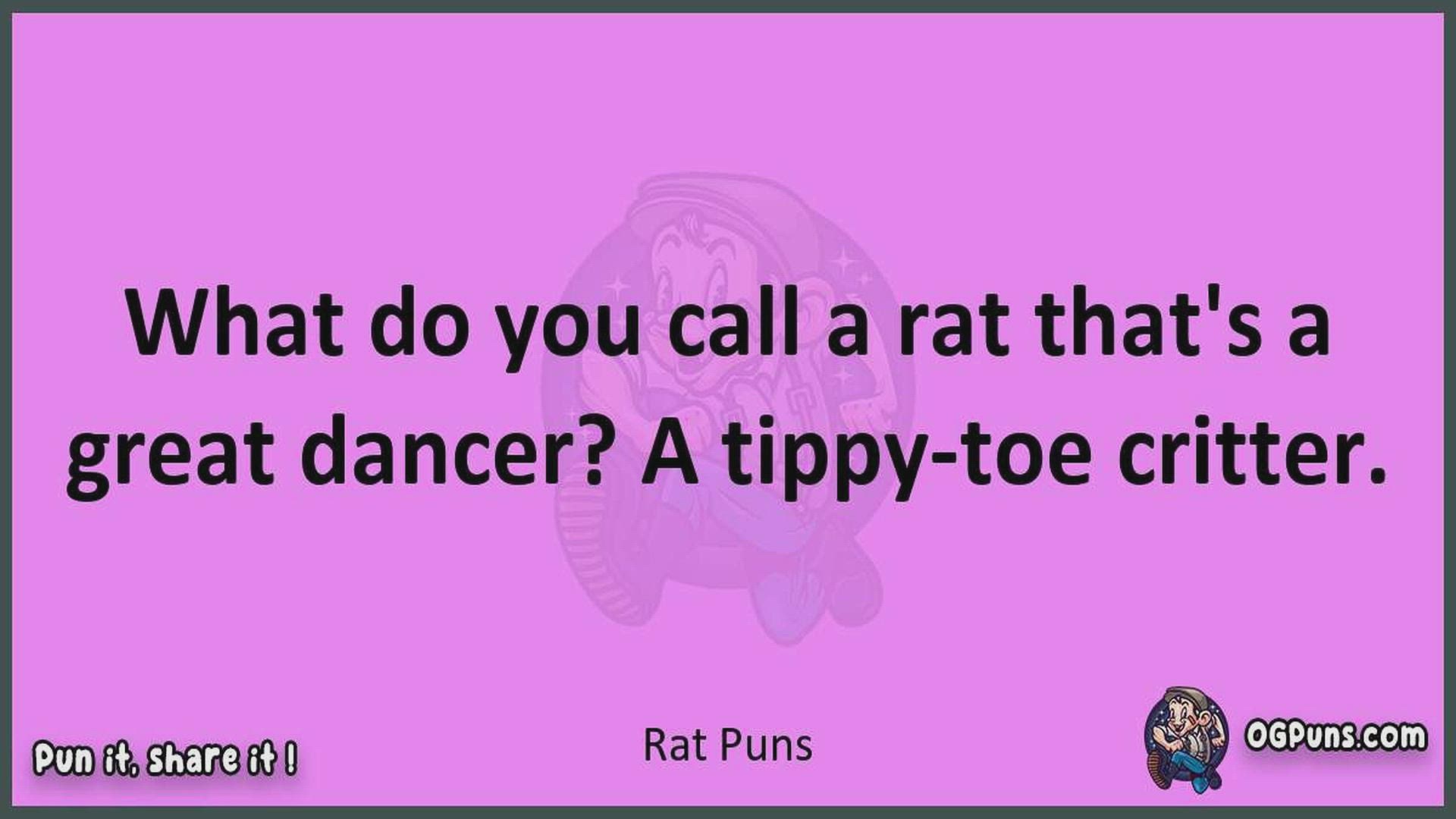Delve into the delightful world of Rat Puns ! Here, you'll find an entertaining mix of jokes, puns, quips, and wordplay. Each piece is crafted to offer a quick escape into humor, perfect for a light-hearted moment in any day. Whether you're seeking a chuckle or a clever twist on familiar themes, this collection promises to deliver smiles and laughter. Embrace the lighter side of life with humor that's both witty and refreshing."