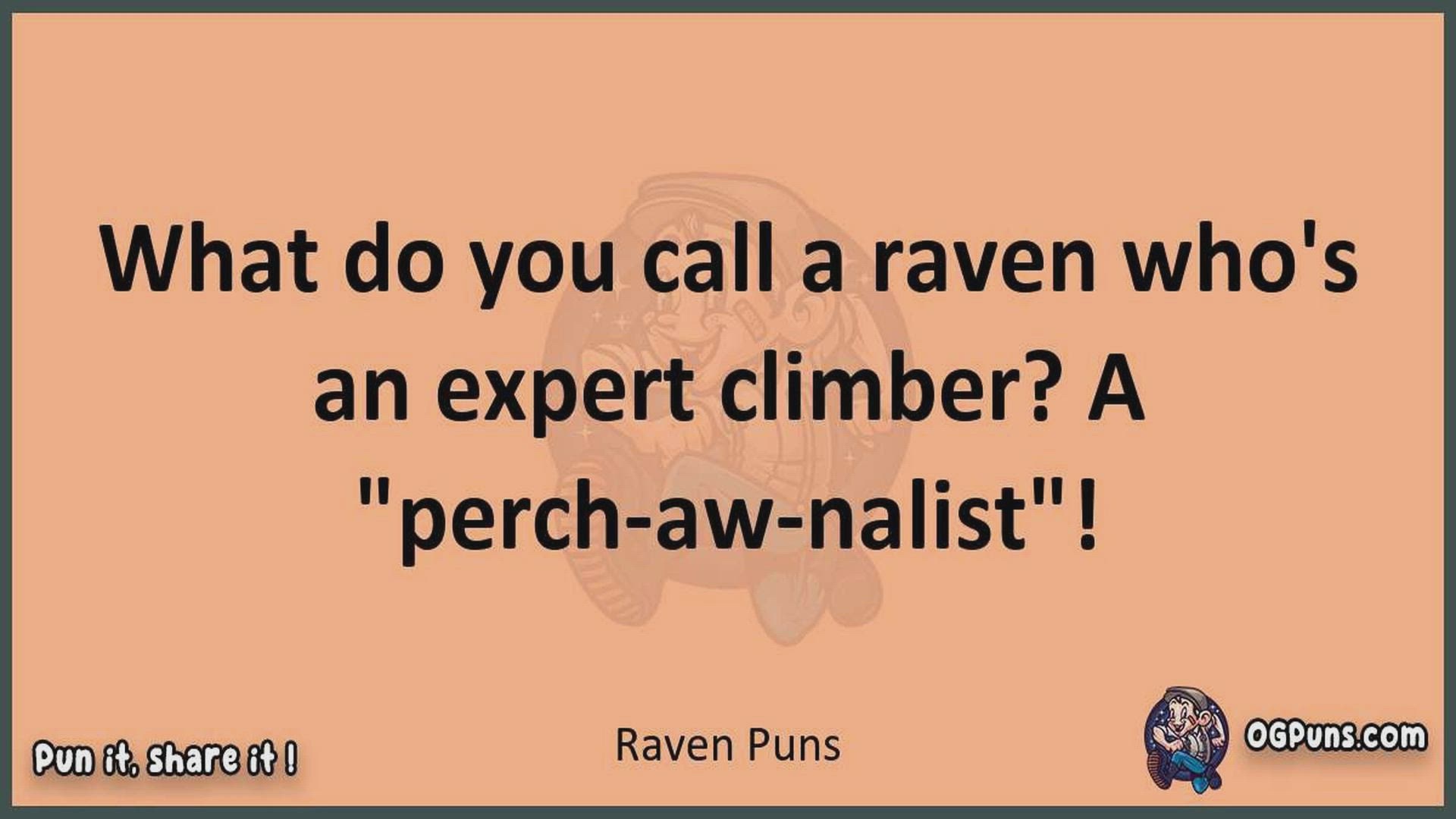 Delve into the delightful world of Raven Puns ! Here, you'll find an entertaining mix of jokes, puns, quips, and wordplay. Each piece is crafted to offer a quick escape into humor, perfect for a light-hearted moment in any day. Whether you're seeking a chuckle or a clever twist on familiar themes, this collection promises to deliver smiles and laughter. Embrace the lighter side of life with humor that's both witty and refreshing."