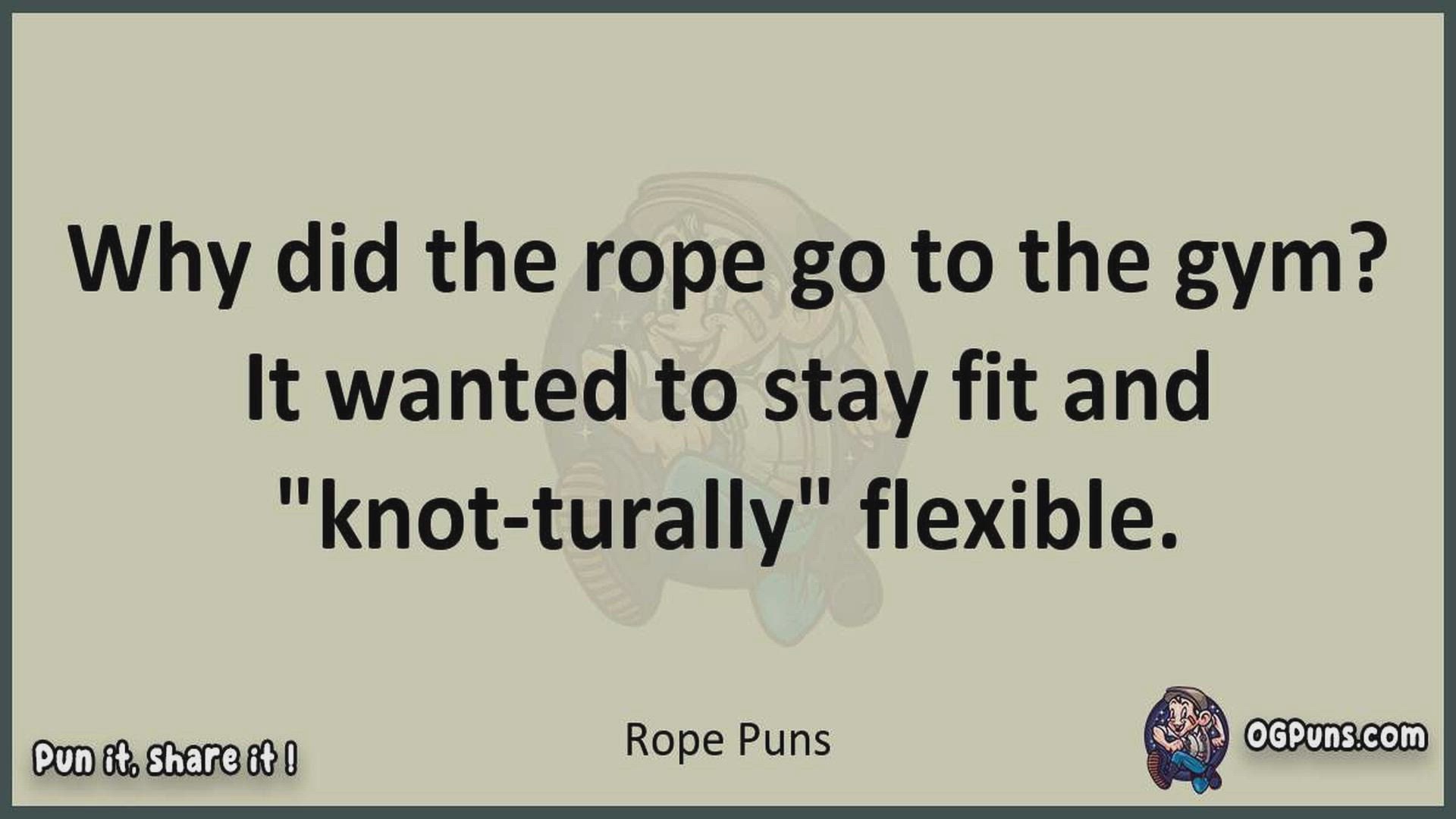 Delve into the delightful world of Rope Puns ! Here, you'll find an entertaining mix of jokes, puns, quips, and wordplay. Each piece is crafted to offer a quick escape into humor, perfect for a light-hearted moment in any day. Whether you're seeking a chuckle or a clever twist on familiar themes, this collection promises to deliver smiles and laughter. Embrace the lighter side of life with humor that's both witty and refreshing."