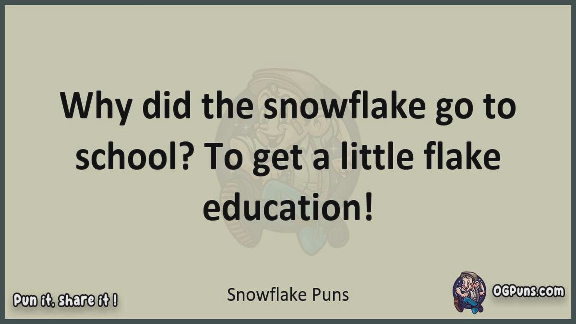 Delve into the delightful world of Snowflake Puns ! Here, you'll find an entertaining mix of jokes, puns, quips, and wordplay. Each piece is crafted to offer a quick escape into humor, perfect for a light-hearted moment in any day. Whether you're seeking a chuckle or a clever twist on familiar themes, this collection promises to deliver smiles and laughter. Embrace the lighter side of life with humor that's both witty and refreshing."