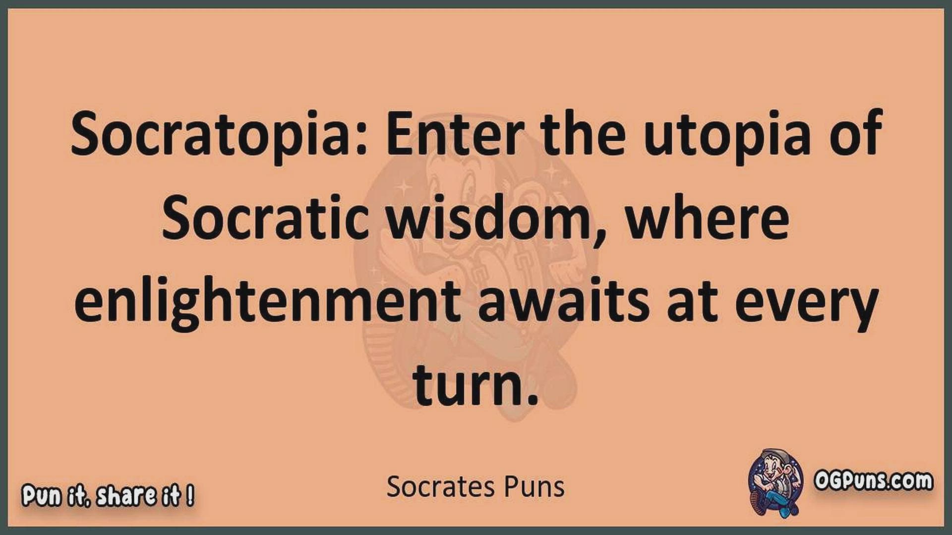 Delve into the delightful world of Socrates Puns ! Here, you'll find an entertaining mix of jokes, puns, quips, and wordplay. Each piece is crafted to offer a quick escape into humor, perfect for a light-hearted moment in any day. Whether you're seeking a chuckle or a clever twist on familiar themes, this collection promises to deliver smiles and laughter. Embrace the lighter side of life with humor that's both witty and refreshing."