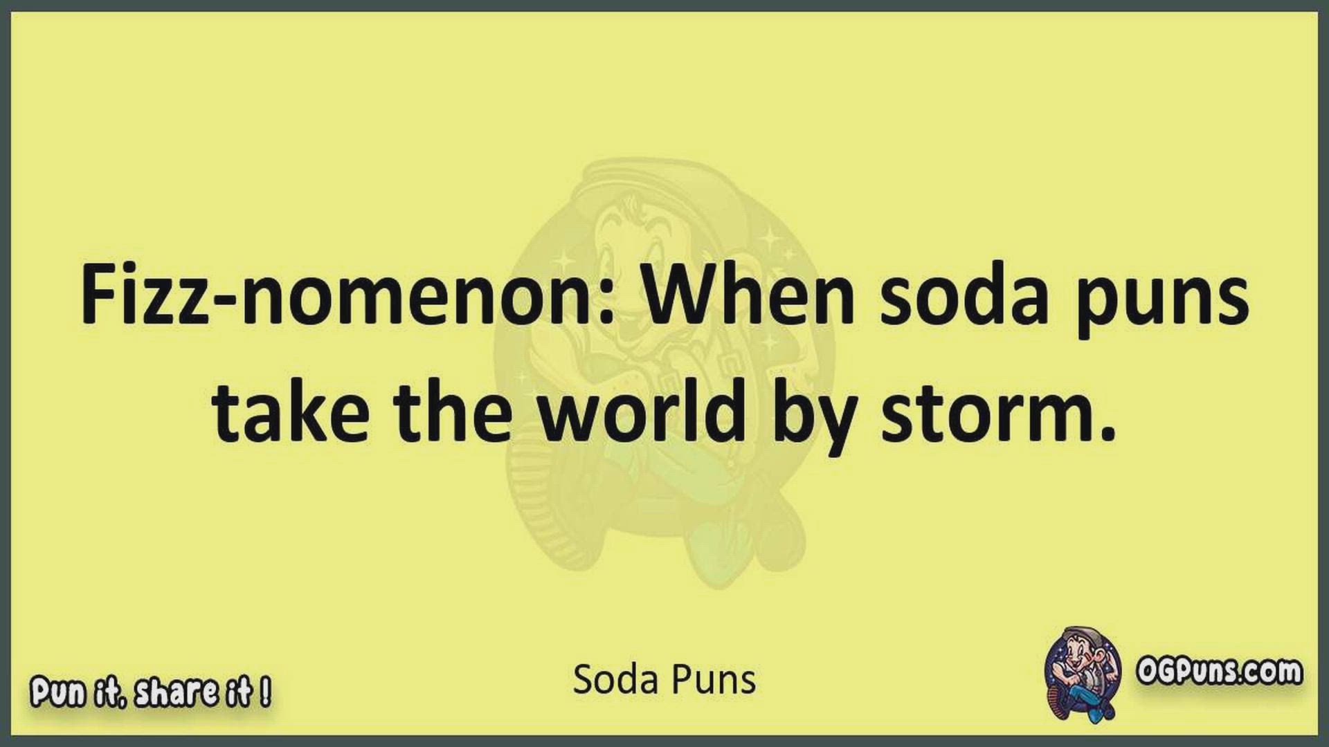 Delve into the delightful world of Soda Puns ! Here, you'll find an entertaining mix of jokes, puns, quips, and wordplay. Each piece is crafted to offer a quick escape into humor, perfect for a light-hearted moment in any day. Whether you're seeking a chuckle or a clever twist on familiar themes, this collection promises to deliver smiles and laughter. Embrace the lighter side of life with humor that's both witty and refreshing."