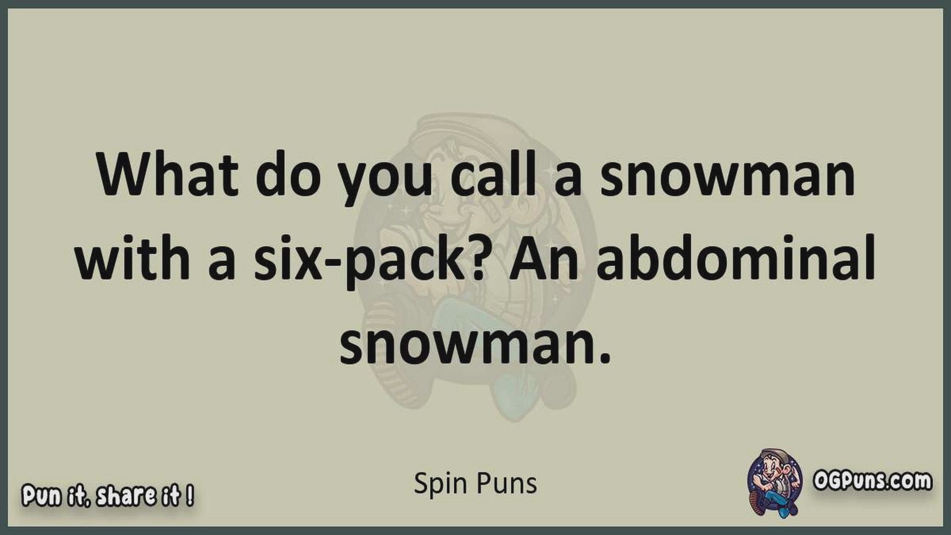 Delve into the delightful world of Spin Puns ! Here, you'll find an entertaining mix of jokes, puns, quips, and wordplay. Each piece is crafted to offer a quick escape into humor, perfect for a light-hearted moment in any day. Whether you're seeking a chuckle or a clever twist on familiar themes, this collection promises to deliver smiles and laughter. Embrace the lighter side of life with humor that's both witty and refreshing."