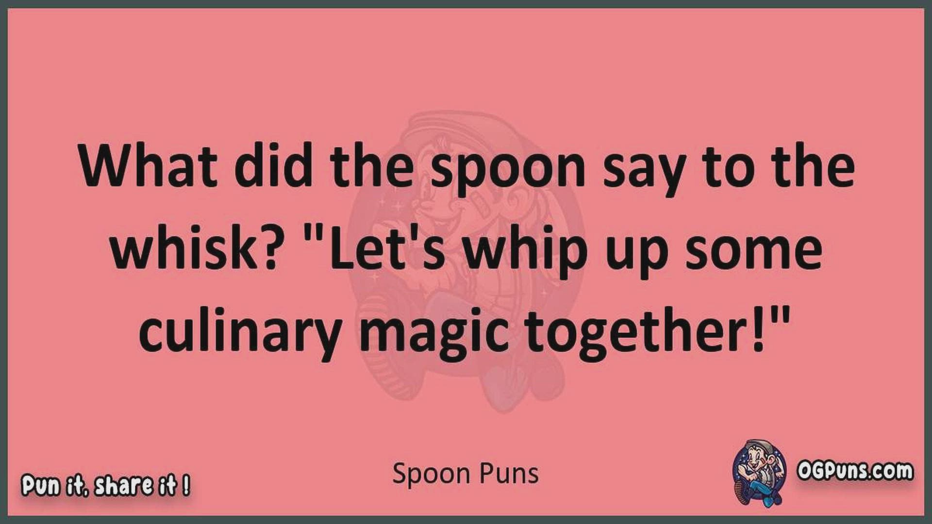 Delve into the delightful world of Spoon Puns ! Here, you'll find an entertaining mix of jokes, puns, quips, and wordplay. Each piece is crafted to offer a quick escape into humor, perfect for a light-hearted moment in any day. Whether you're seeking a chuckle or a clever twist on familiar themes, this collection promises to deliver smiles and laughter. Embrace the lighter side of life with humor that's both witty and refreshing."
