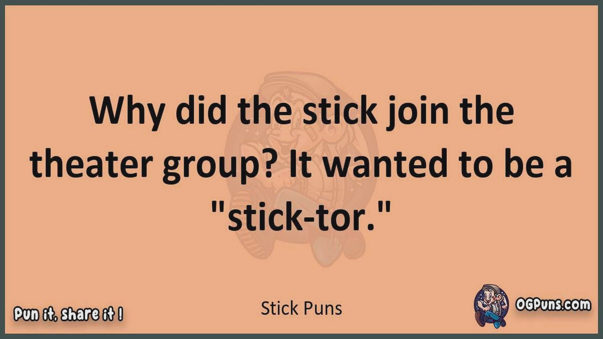 Delve into the delightful world of Stick Puns ! Here, you'll find an entertaining mix of jokes, puns, quips, and wordplay. Each piece is crafted to offer a quick escape into humor, perfect for a light-hearted moment in any day. Whether you're seeking a chuckle or a clever twist on familiar themes, this collection promises to deliver smiles and laughter. Embrace the lighter side of life with humor that's both witty and refreshing."