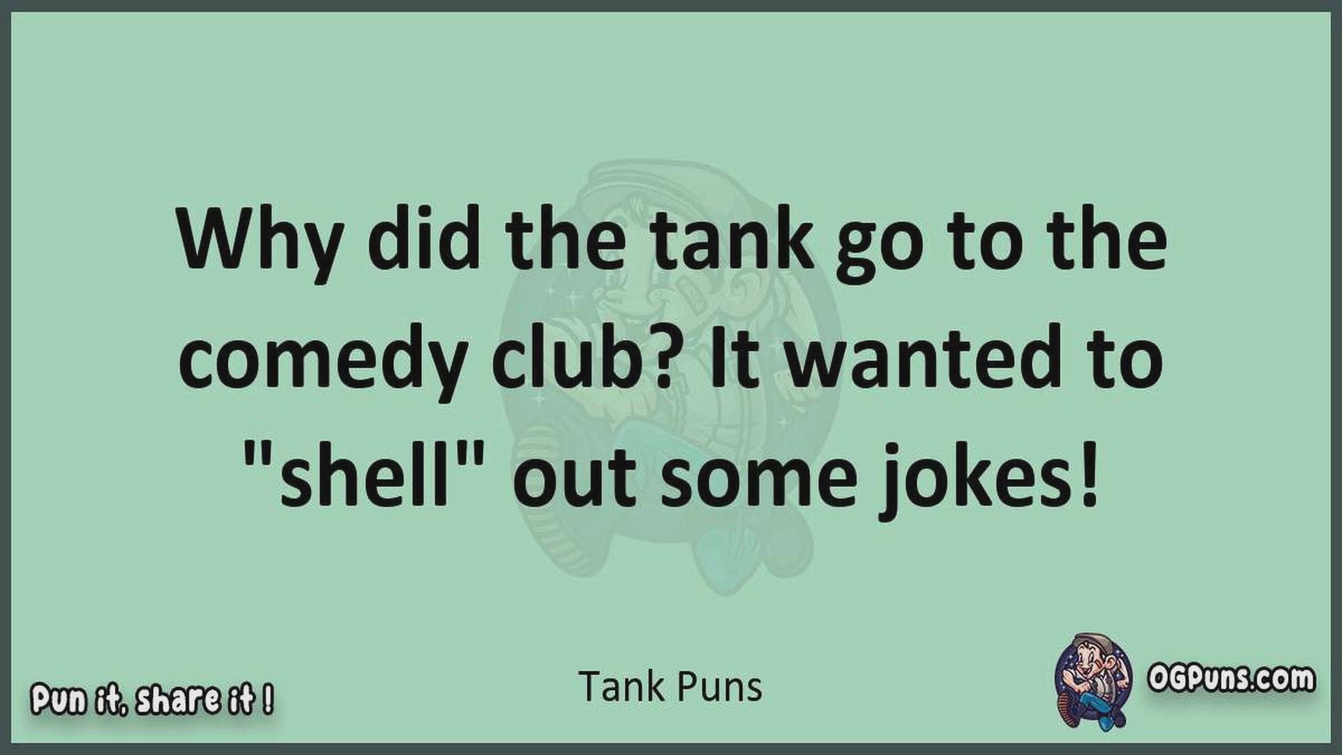 Delve into the delightful world of Tank Puns ! Here, you'll find an entertaining mix of jokes, puns, quips, and wordplay. Each piece is crafted to offer a quick escape into humor, perfect for a light-hearted moment in any day. Whether you're seeking a chuckle or a clever twist on familiar themes, this collection promises to deliver smiles and laughter. Embrace the lighter side of life with humor that's both witty and refreshing."