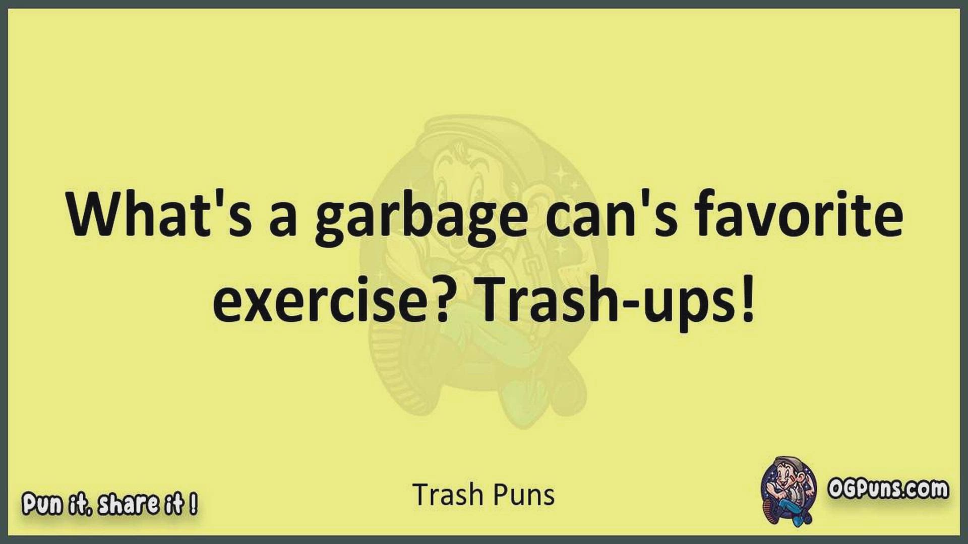 Delve into the delightful world of Trash Puns ! Here, you'll find an entertaining mix of jokes, puns, quips, and wordplay. Each piece is crafted to offer a quick escape into humor, perfect for a light-hearted moment in any day. Whether you're seeking a chuckle or a clever twist on familiar themes, this collection promises to deliver smiles and laughter. Embrace the lighter side of life with humor that's both witty and refreshing."