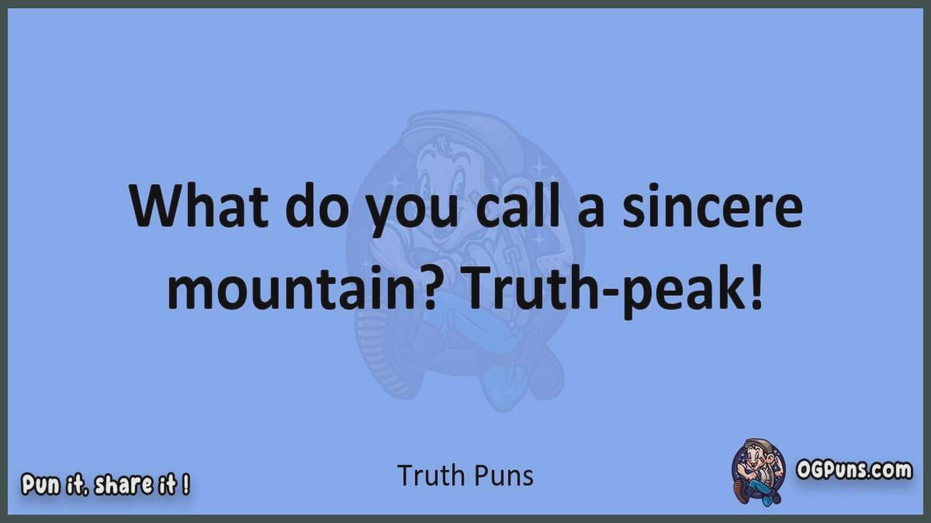 Delve into the delightful world of Truth Puns ! Here, you'll find an entertaining mix of jokes, puns, quips, and wordplay. Each piece is crafted to offer a quick escape into humor, perfect for a light-hearted moment in any day. Whether you're seeking a chuckle or a clever twist on familiar themes, this collection promises to deliver smiles and laughter. Embrace the lighter side of life with humor that's both witty and refreshing."