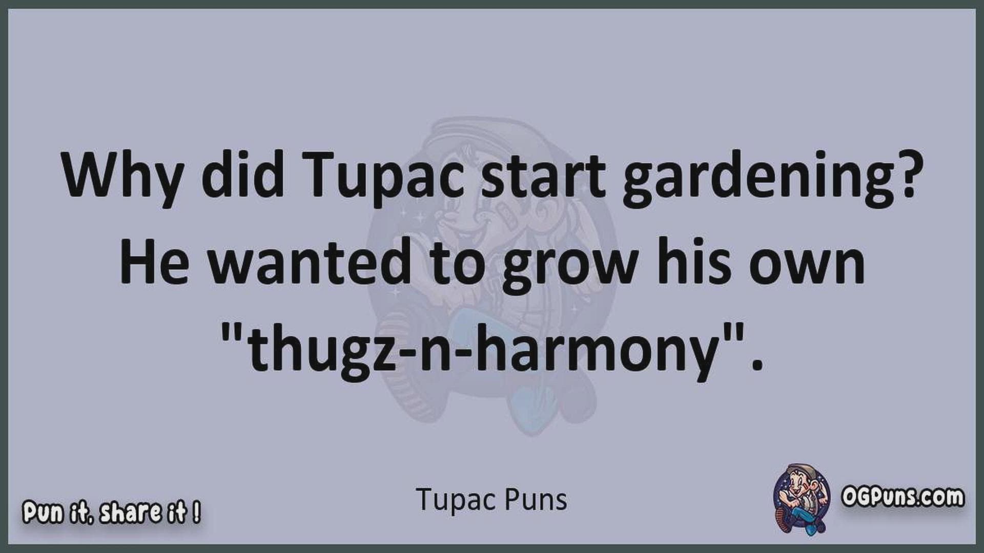 Delve into the delightful world of Tupac Puns ! Here, you'll find an entertaining mix of jokes, puns, quips, and wordplay. Each piece is crafted to offer a quick escape into humor, perfect for a light-hearted moment in any day. Whether you're seeking a chuckle or a clever twist on familiar themes, this collection promises to deliver smiles and laughter. Embrace the lighter side of life with humor that's both witty and refreshing."