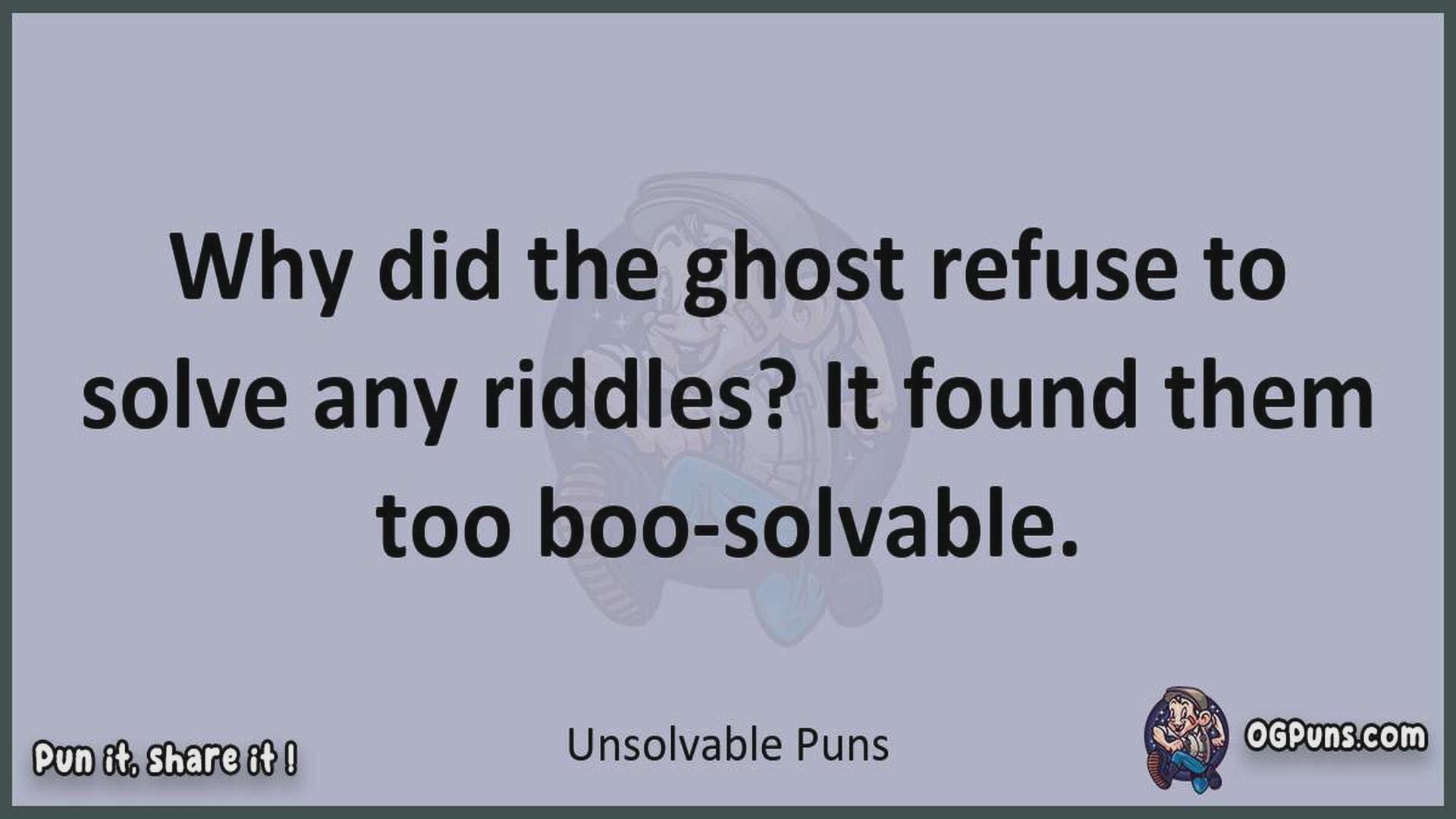 Delve into the delightful world of Unsolvable Puns ! Here, you'll find an entertaining mix of jokes, puns, quips, and wordplay. Each piece is crafted to offer a quick escape into humor, perfect for a light-hearted moment in any day. Whether you're seeking a chuckle or a clever twist on familiar themes, this collection promises to deliver smiles and laughter. Embrace the lighter side of life with humor that's both witty and refreshing."
