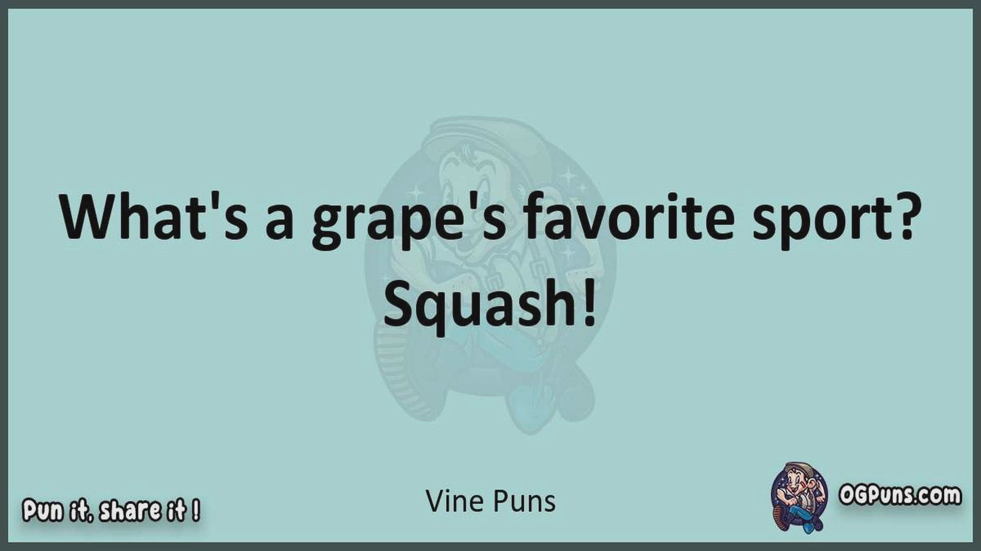Delve into the delightful world of Vine Puns ! Here, you'll find an entertaining mix of jokes, puns, quips, and wordplay. Each piece is crafted to offer a quick escape into humor, perfect for a light-hearted moment in any day. Whether you're seeking a chuckle or a clever twist on familiar themes, this collection promises to deliver smiles and laughter. Embrace the lighter side of life with humor that's both witty and refreshing."