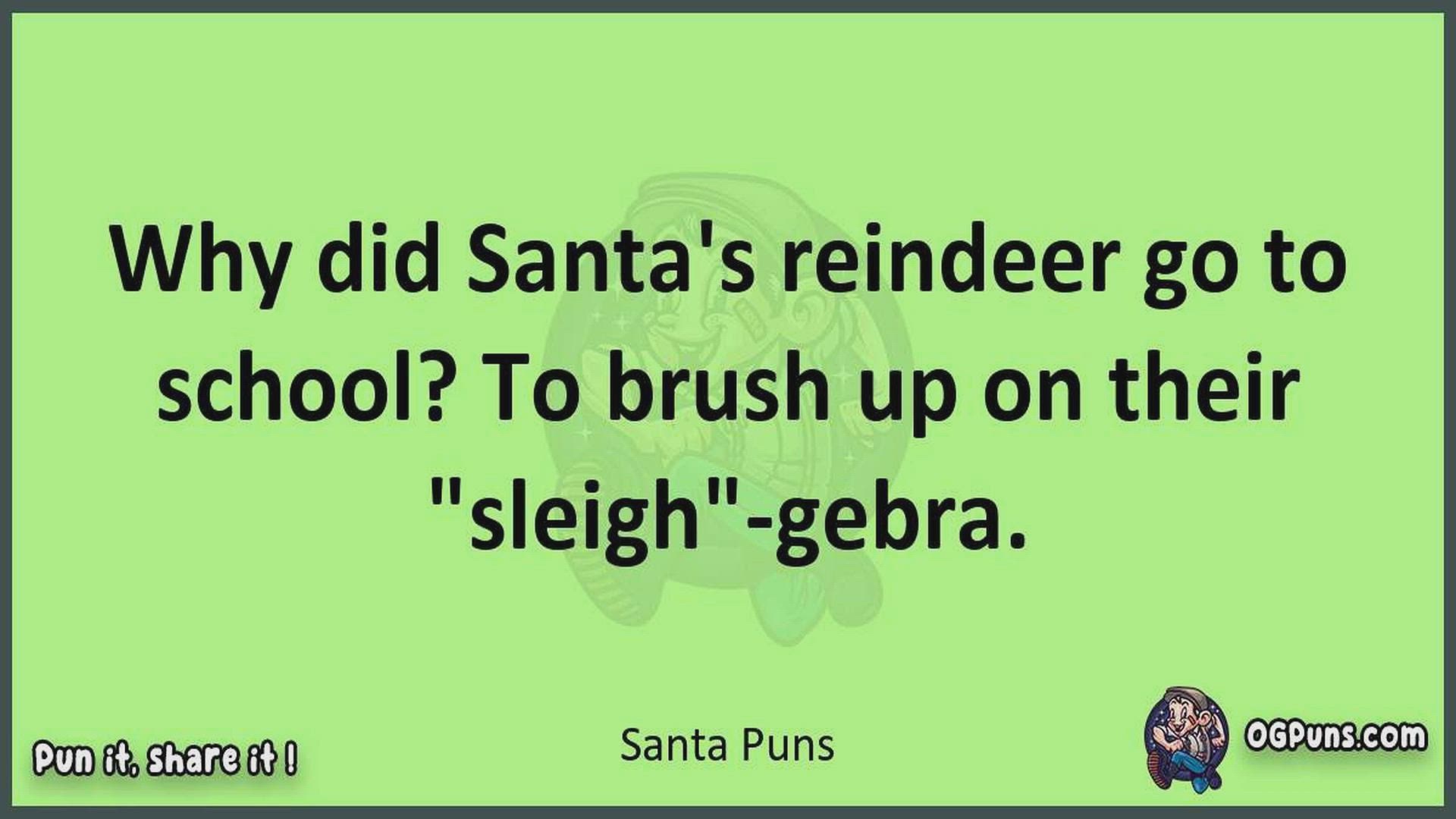 Delve into the delightful world of Santa Puns ! Here, you'll find an entertaining mix of jokes, puns, quips, and wordplay. Each piece is crafted to offer a quick escape into humor, perfect for a light-hearted moment in any day. Whether you're seeking a chuckle or a clever twist on familiar themes, this collection promises to deliver smiles and laughter. Embrace the lighter side of life with humor that's both witty and refreshing."