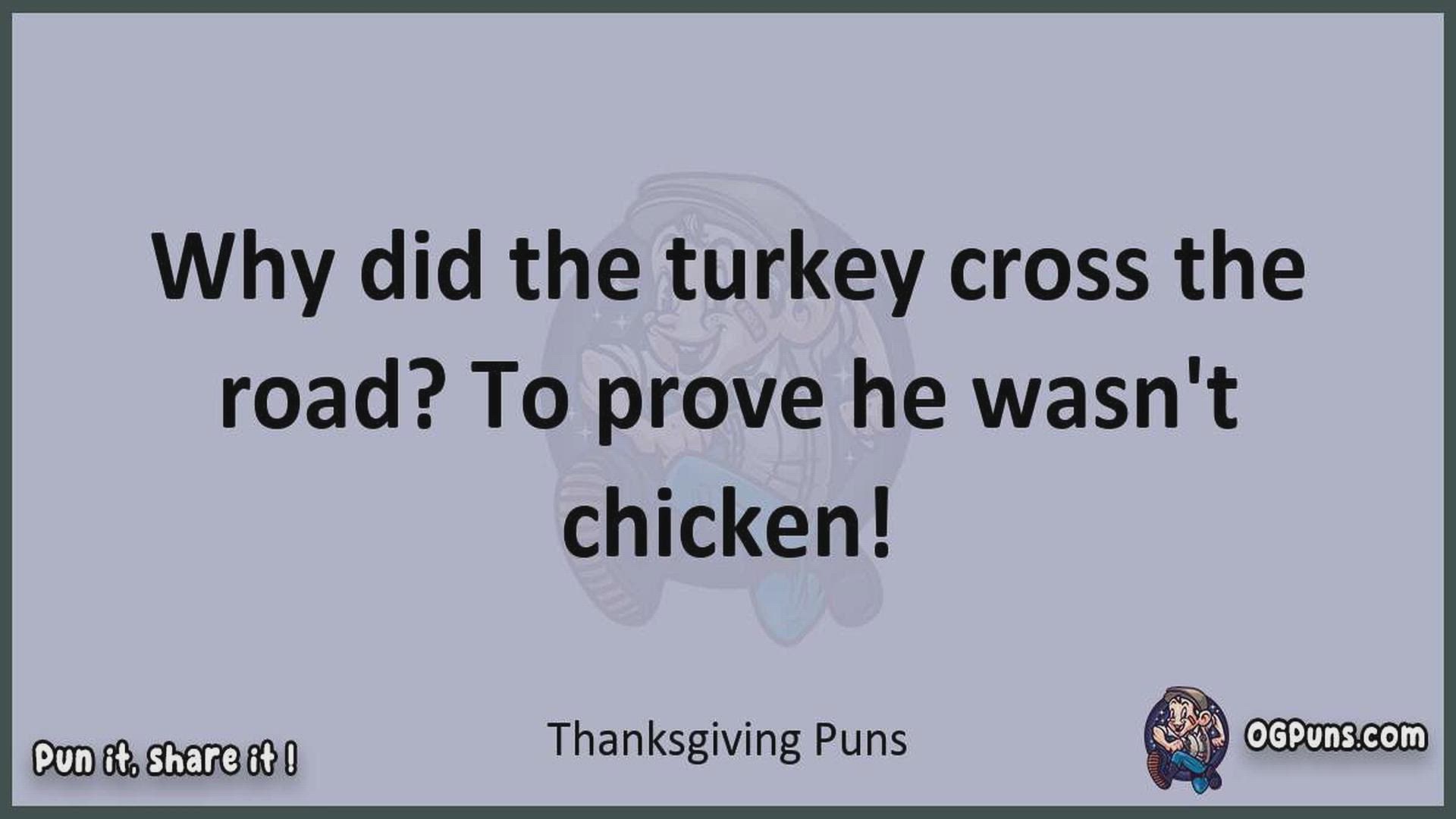 Delve into the delightful world of Thanksgiving Puns ! Here, you'll find an entertaining mix of jokes, puns, quips, and wordplay. Each piece is crafted to offer a quick escape into humor, perfect for a light-hearted moment in any day. Whether you're seeking a chuckle or a clever twist on familiar themes, this collection promises to deliver smiles and laughter. Embrace the lighter side of life with humor that's both witty and refreshing."