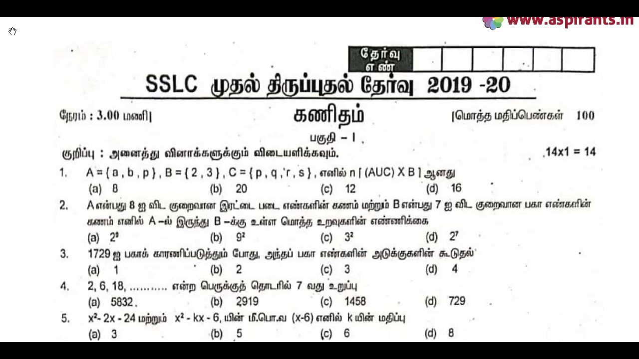 Click here to Download PDF (10th Maths First Revision Question Paper 2019-2020 | Cuddalore District | Tamil Medium) - https://www.aspirants.in/2020/01/10th-maths-first-revision-question-paper-2019-2020-cuddalore-district-tamil-medium.html