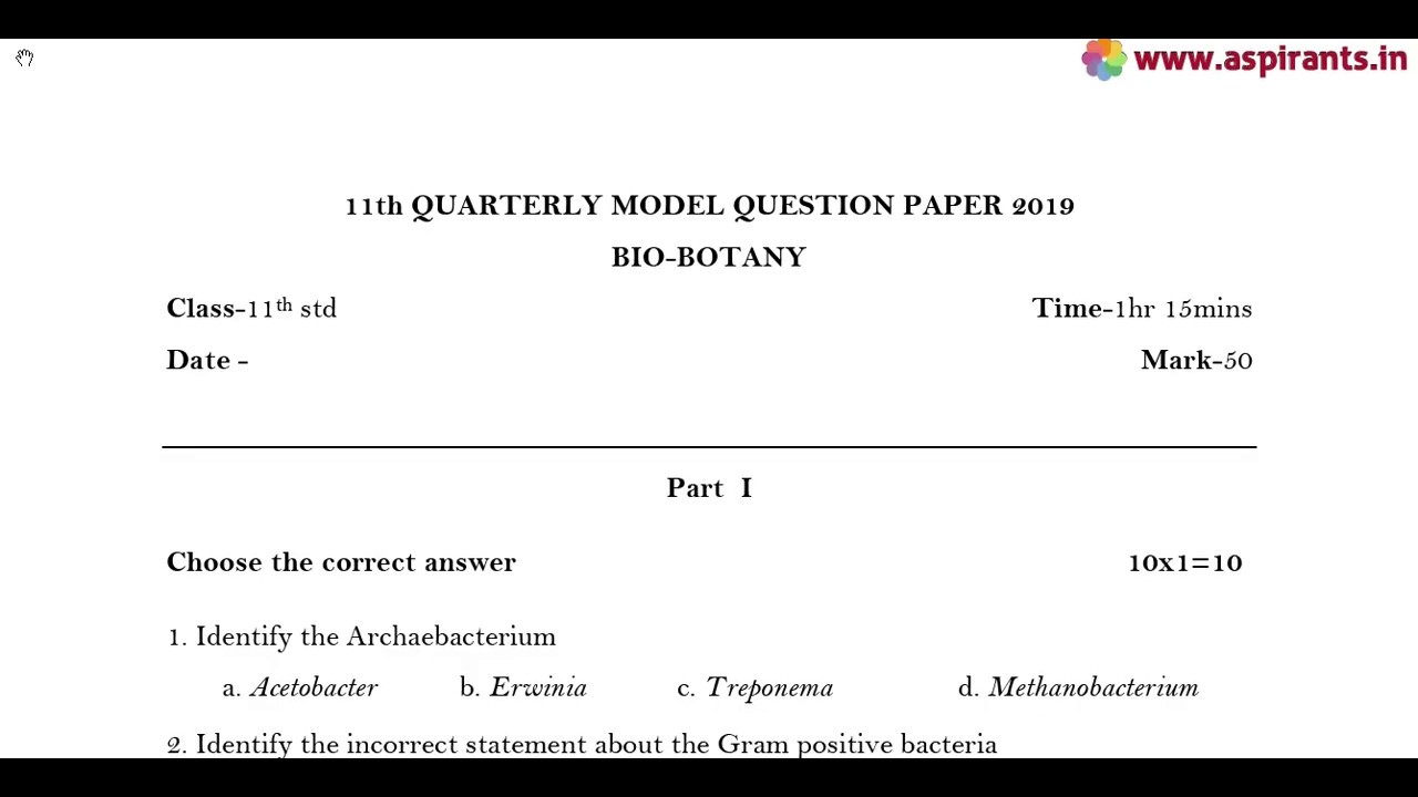 Click here to Download PDF (11th Bio-Botany Quarterly Exam 2019-20 Model Question Paper 1 | Dharmapuri District | English Medium) - https://www.aspirants.in/p/11th-bio-botany-quarterly-exam-model.html