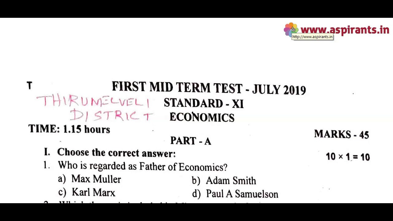 Click here to Download PDF (11th Economics First Mid Term Question Paper 2019-20 | Tirunelveli District | English Medium) - https://www.aspirants.in/p/11th-economics-first-mid-term-original.html