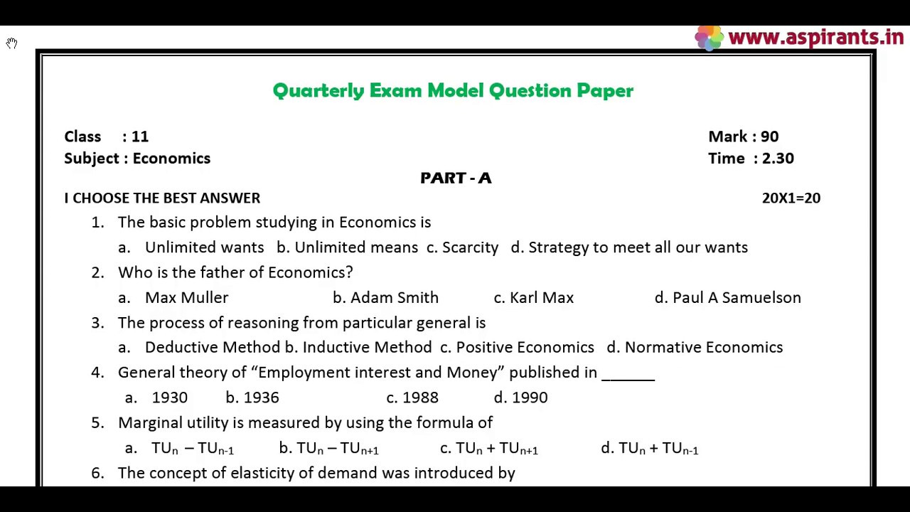 Team Aspirants Provides a clear and special Guidance for all 11th Students. Aspirants Team Provides 11th Economics Model Exam 2018-19 Quarterly Model Question Papers and Answer Keys ( Previous year Question Papers). Tamilnadu Government conducts Quarterly Common Examinations every year at the end of first term - (September). Now the quarterly Examinations are conducted on the content of Samacheer Kalvi Text Books throughout Tamilnadu. These Exams will be conducted common, that means all the state board schools should follow the same question papers especially 11th Standard. This time our team has taken a keen effort to provide more study materials in order to help the Students. So we have covered the maximum and we are sure that we will instantly update more study materials for 11th Standard Exams. These Answer Keys are prepared by well-versed subject teachers. So that the students and teachers can analyse the best one for their evaluation.