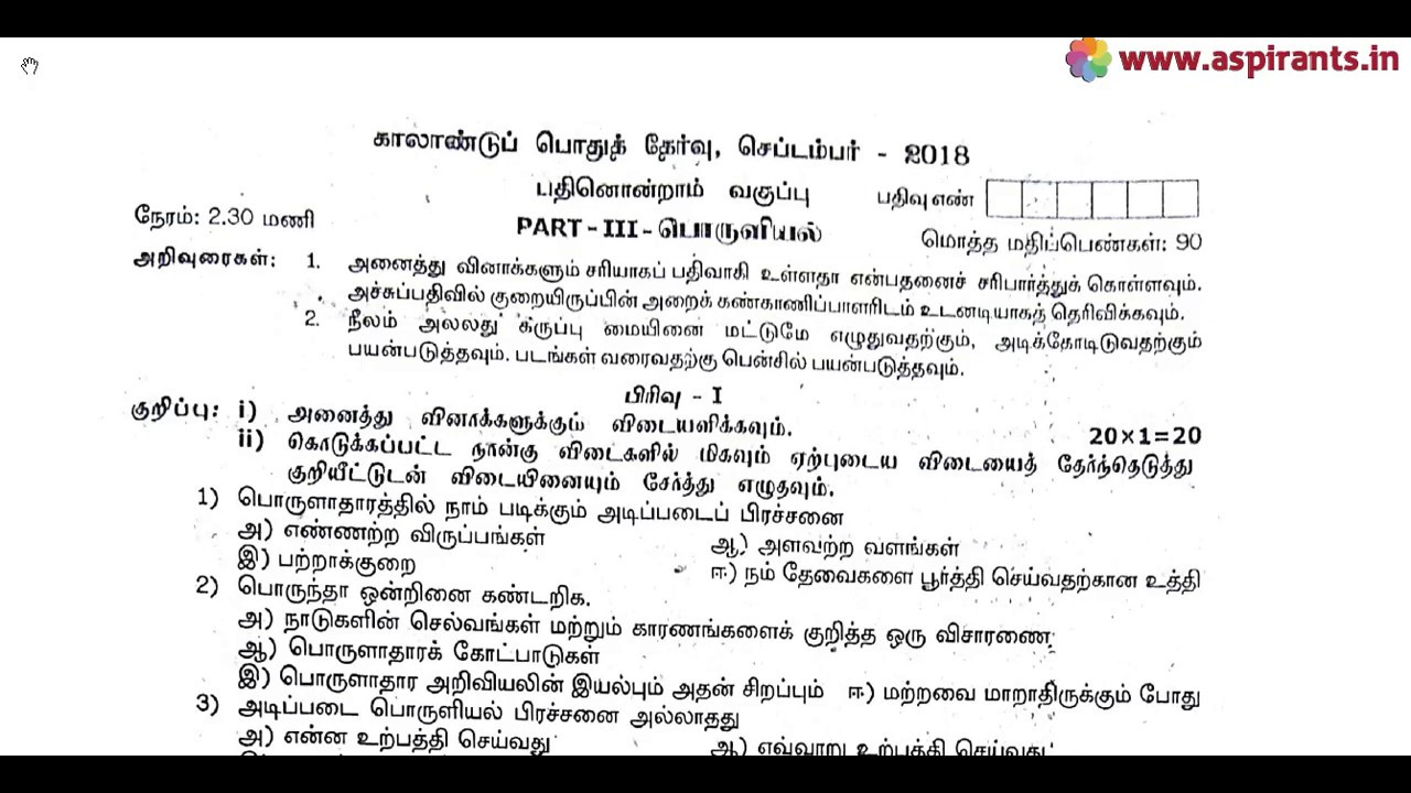 11th Economics Quarterly Exam Question Paper 2018-19 | Tamil Medium | Team Aspirants