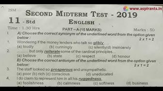 11th English 2nd MidTerm Question Paper 2019-20 | Dharmapuri District | Team Aspirants