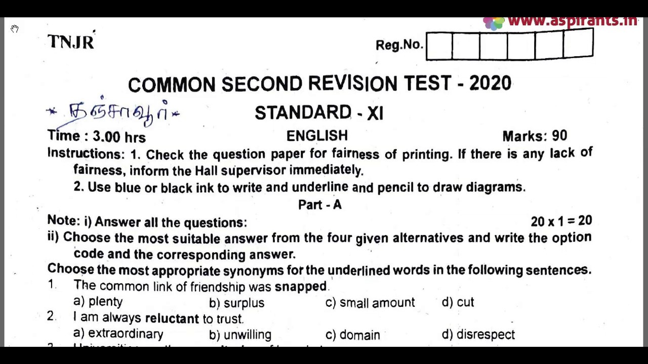 Click here to Download PDF (11th English Second Revision Question Paper 2019-2020 | Thanjavur District) - https://www.aspirants.in/2020/02/11th-english-second-revision-question-paper-2019-2020-thanjavur-district.html