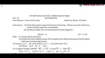 11th Maths Half Yearly Exam 2018 - Model Question Paper | Tiruvannamalai District | English Medium