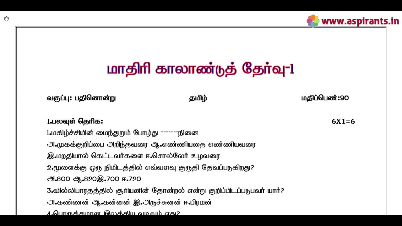 Click here to Download PDF (11th Tamil Quarterly Exam 2019 20 Model Question Paper 1 | Chengalpattu District) - https://www.aspirants.in/p/11th-tamil-quarterly-exam-2019-20-model_13.html