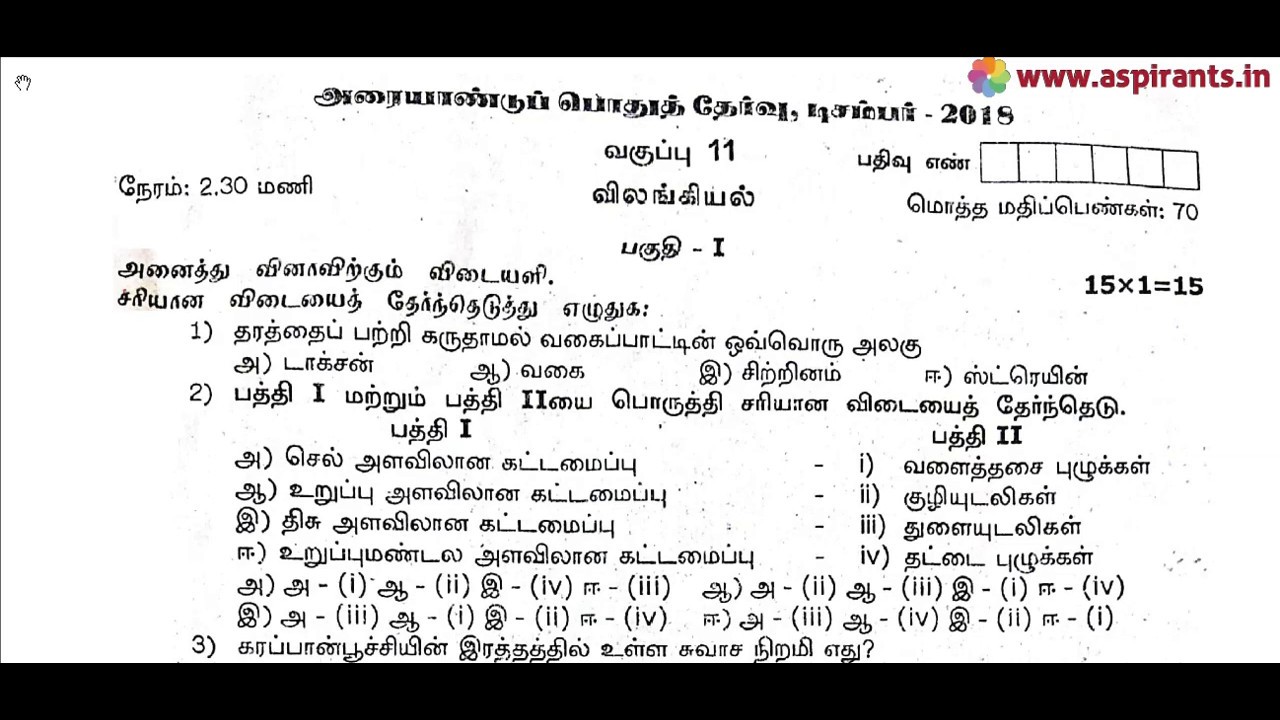 11th Zoology Half Yearly Question Paper 2018-19 (Tamil Medium) | Team Aspirants