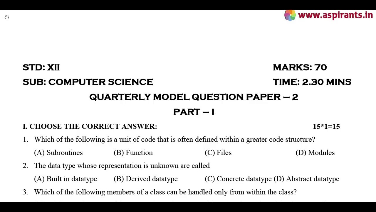 Click here to Download PDF (12th Computer Science Quarterly Exam 2019-20 Model Question Paper-2 | Thanjavur District | English Medium) - https://www.aspirants.in/p/12th-computer-science-quarterly-exam_78.html